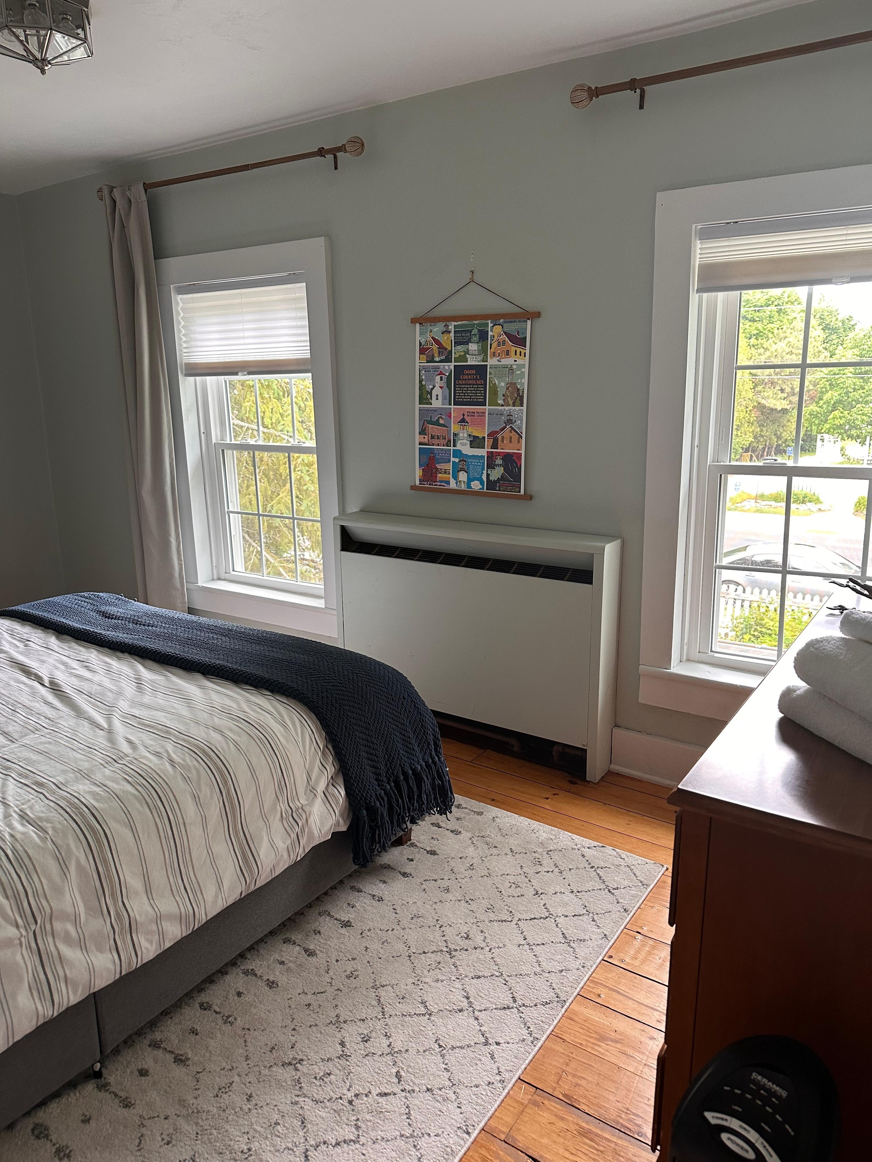 My husband and I + our 2 teens stayed at Harbor House last month; we were just the 2nd set of renters here. And we’re so excited about this new property! The location is excellent - along with lovely water views it’s also super close to (in our opinion) the best spots in Baileys Harbor - Door County Brewing Co. and Blue Ox! The nautical decor fits perfectly with the charm of this older house, and the owners have thought of every detail. Enjoyed the super comfy mattresses (nice to have a king in the master!) along with the higher end pillows and bed linens, and of course the sparkling new / updated bathrooms were lovely! FYI there’s a giant window in the master bath shower, so you kind of get the feel of being in an outdoor shower. (But don’t worry, the side yard you’re looking at is wooded/private 😀) Was also nice to sit out on the side patio or front steps with our coffee in the morning and watch the town come to life...all those other folks had to find parking spots...but WE were literally just steps from the best coffee (Bearded Heart) and the best breakfast (Harbor Grill) in town! Owner Pam was also SUPER responsive and helpful...she answered our many questions in a flash, ahead of our arrival...and once there helped us with some special requests too. Such a great addition to the Baileys Harbor rental pool! Choose Harbor House! You won’t regret it 😀