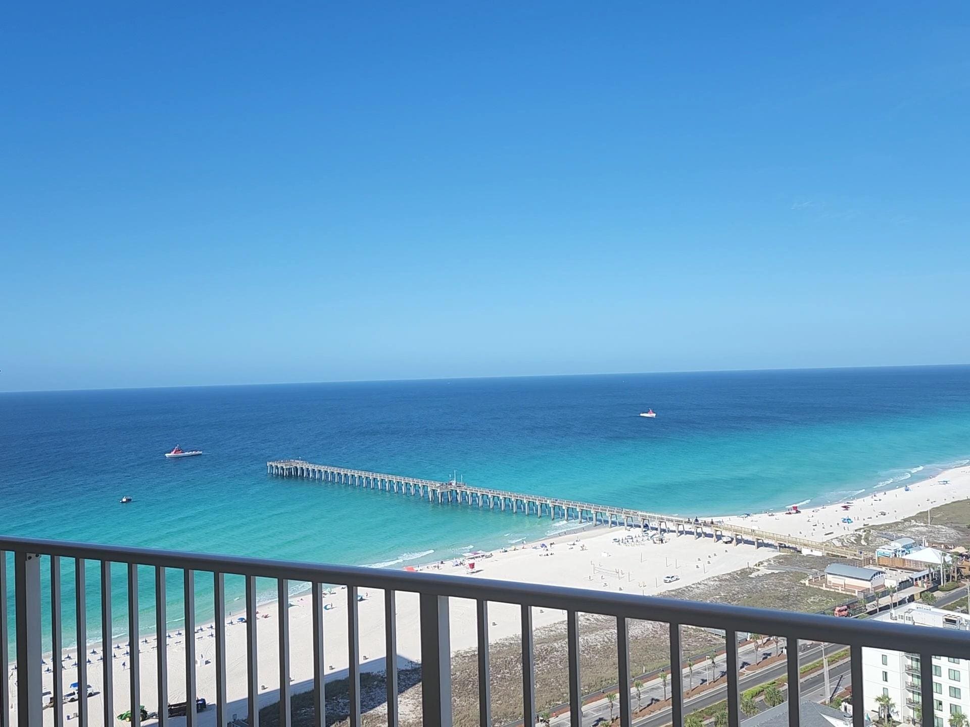 The wraparound balcony provides one of the most impressive western views in Panama City Beach, offering a front-row seat to Pier Park fireworks on July 4th and New Yearâs Eve. Thereâs ample seating for eight, including two sun loungers, to relax and soak in the sunsets over the Gulf.