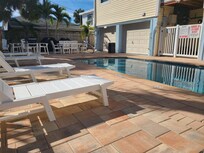 If you're looking for a charming rental for a perfect vacation, then look no further than Condo Del Mar! These cozy 2-bedroom, 2-bathroom condos are part of a fourplex in the heart of Indian Rocks Beach. With sandy beaches just steps ahead, a heated pool and spa in the back, and a game room for everyone to enjoy below your feet, rest and recreation are at your fingertips!