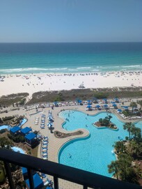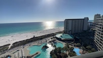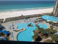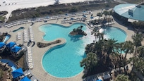 Beautiful stay. Main pool is not heated but the other pools are and there's three hot tubs. I didn't use any of those because I spent my time at the beach with my family and friends which was wonderful. The property was clean and everything worked. Drain and master bathroom shower is a little slow. We had 10 in our party and had plenty of room in the penthouse.