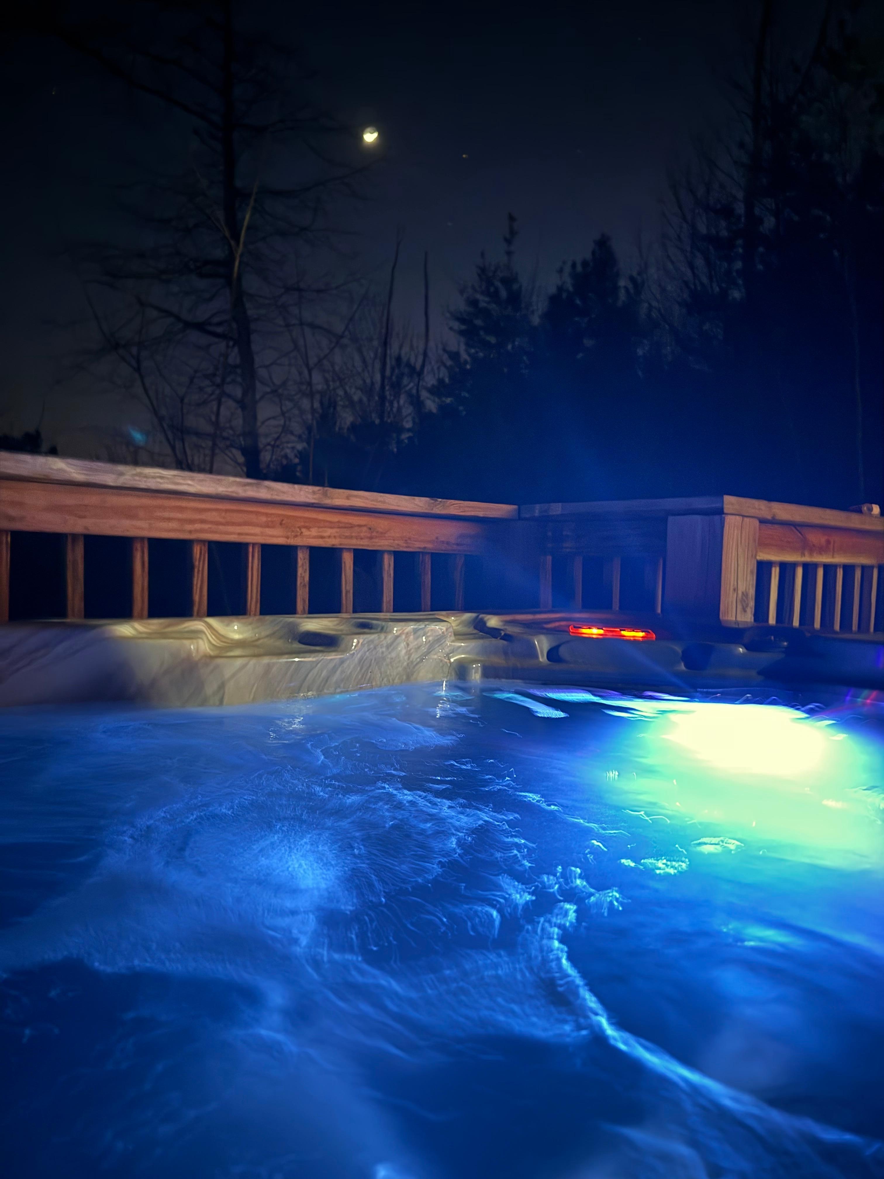 Upstairs, a dedicated game loft brings playful cabin charm with foosball, an arcade console, and a quiet reading nook overlooking the main living space. Step outside to the deck and slip into the private hot tub, where the surrounding trees and calm create the perfect place to reset.