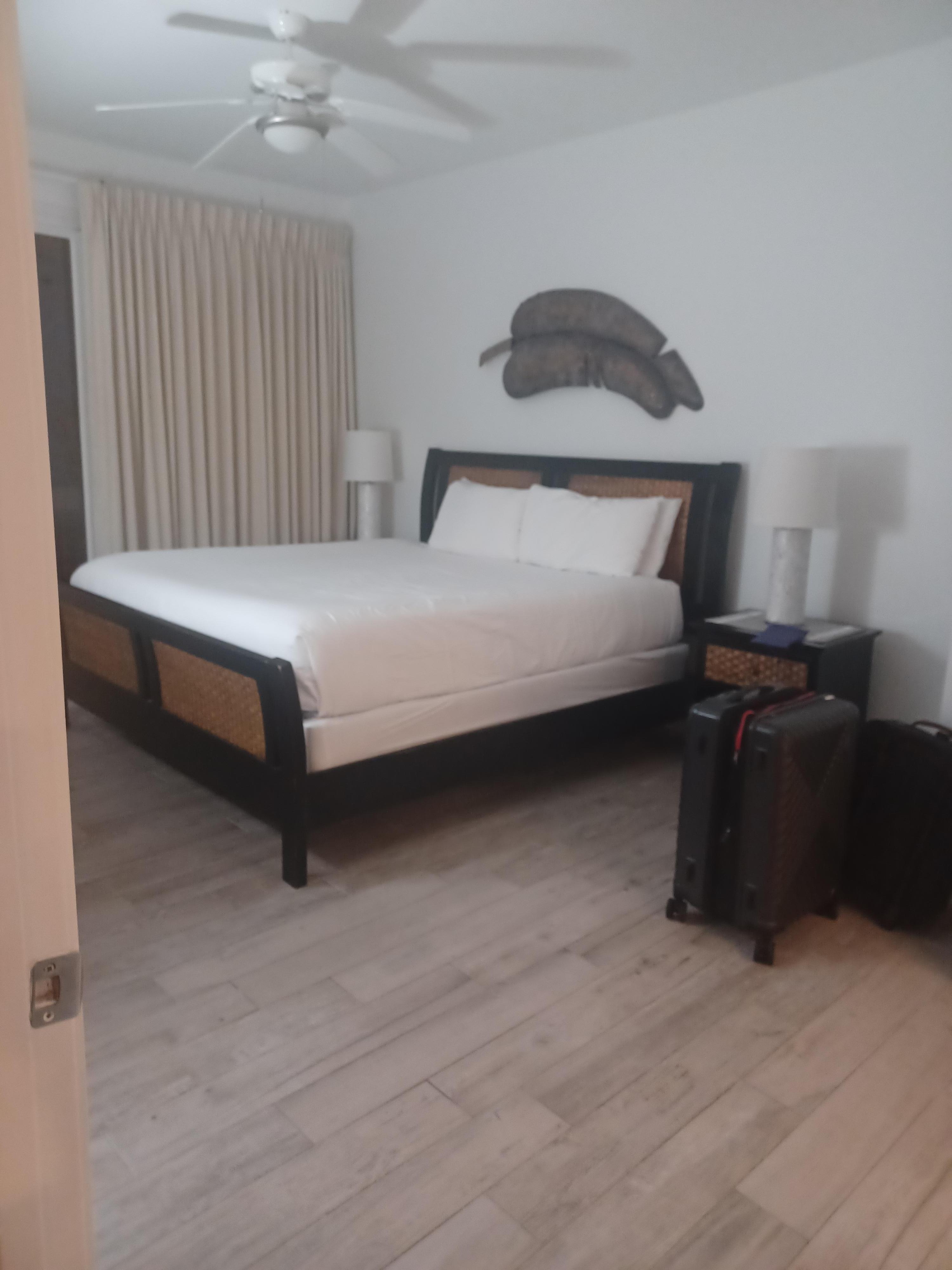 Many of the unit's furnishings are at the end of their life, i.e. the stove eyes took a long time to heat up; the refrigerator froze most of our food; the owner's suite bed was very uncomfortable; the owners suite bathroom faucet is loose; the area rugs are filthy, with the living room rug curling on the corner causing a trip hazzard; the non-stick pans caused everything to stick. Photos show the unit as beautiful; however, upon closer look, it is time for a refresh.
