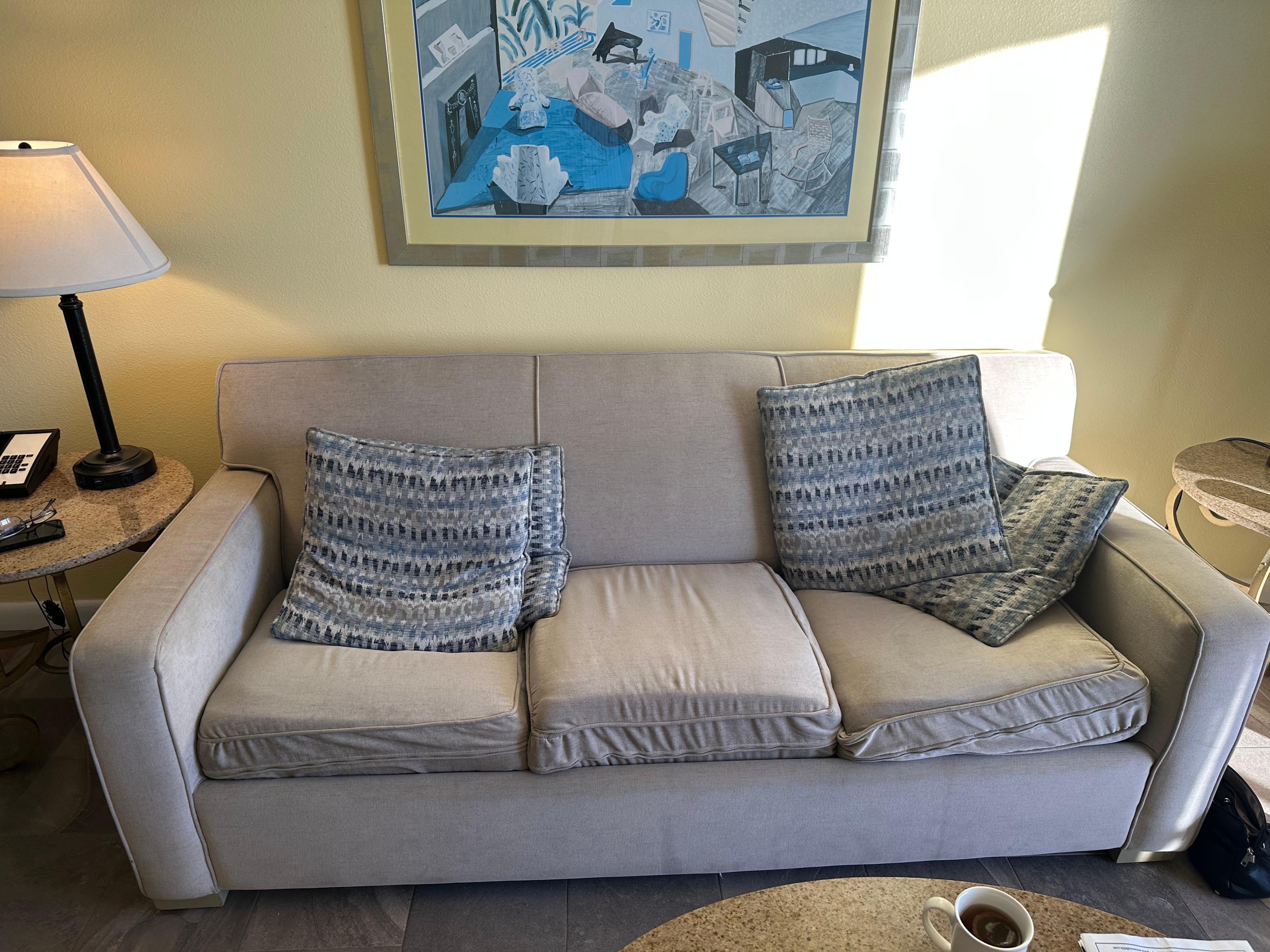 The host seemed very pleasant to work with, location was great! However, the condo was in huge need of being updated. I think the bathtub is the original very dated! The couch and chair are just ridiculous, they are so worn you had to use two cushions so you didn’t sink quite so bad. I have a bad back and this didn’t help! The tv is quite small in the living room, old but still works great! I highly recommend reading all the rules before you get there, then you would know bring tp, Kleenex, laundry soap, hand soap and paper towels with you. Lots of room to put your clothes and belongings in the bedroom, it was clean when we arrived, that was nice!