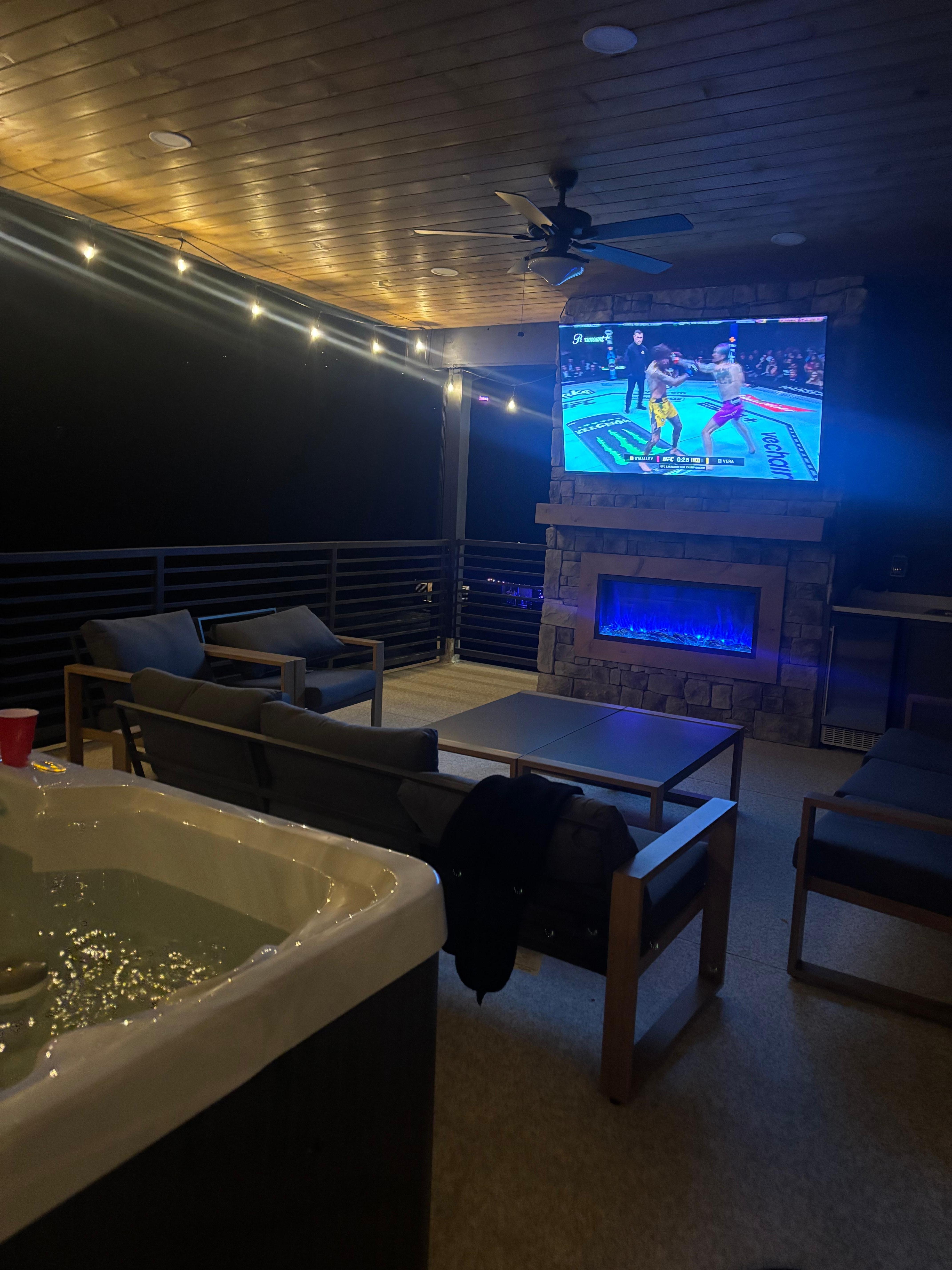Whether youâre perfecting your swing in the private golf simulator room, playing other sports at the multi-sports simulator, unwinding in the rooftop hot tub, or gathering for a meal under the stars, this cabin delivers nonstop entertainment and comfort. Enjoy spacious open living areas, cozy fireplaces, and stylish interiors that make every moment feel special.
