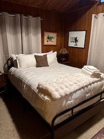 The bedrooms were cozy and the amenities provided in the bathroom were great! Check in was clear and detailed. Communication with the host was informative, positive, and timely. The espresso machine was lovely to use each morning. Felt like a retreat! The location was the best part! Private, Truckee River view and access, and National Forrest next to the cabin. The trees and backyard surrounding the cabin are so beautiful. Quick drive to Olympic Valley/Palisades. My family definitely will want to come back!!!