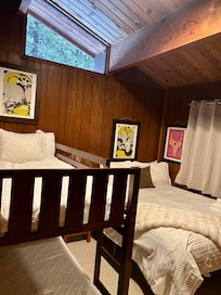 2- with a queen bed and twin bunk beds
