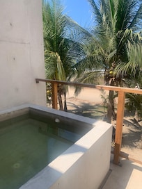 Pictures are accurate. Place is actually a little bigger than how it looks in the pics. Lots of room for 2 with everything you need. Plunge pool was great to cool down in. Closest building to the beach in the area. You can hear the waves crashing from the bedroom in the back with the doors closed and a/c on at night. Make sure to have the fish tacos at Oaxachi a couple blocks up and rent a scooter from Pedro only a few feet away from your back steps (across from the tattoo shop).