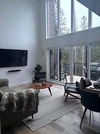 Niché dans Lanaudière, ce chalet combine confort et authenticité avec 6 chambres, cuisine équipée, sauna, spa, foyer, table de jeux, et un emplacement idéal près de la station de ski Val St-Côme.