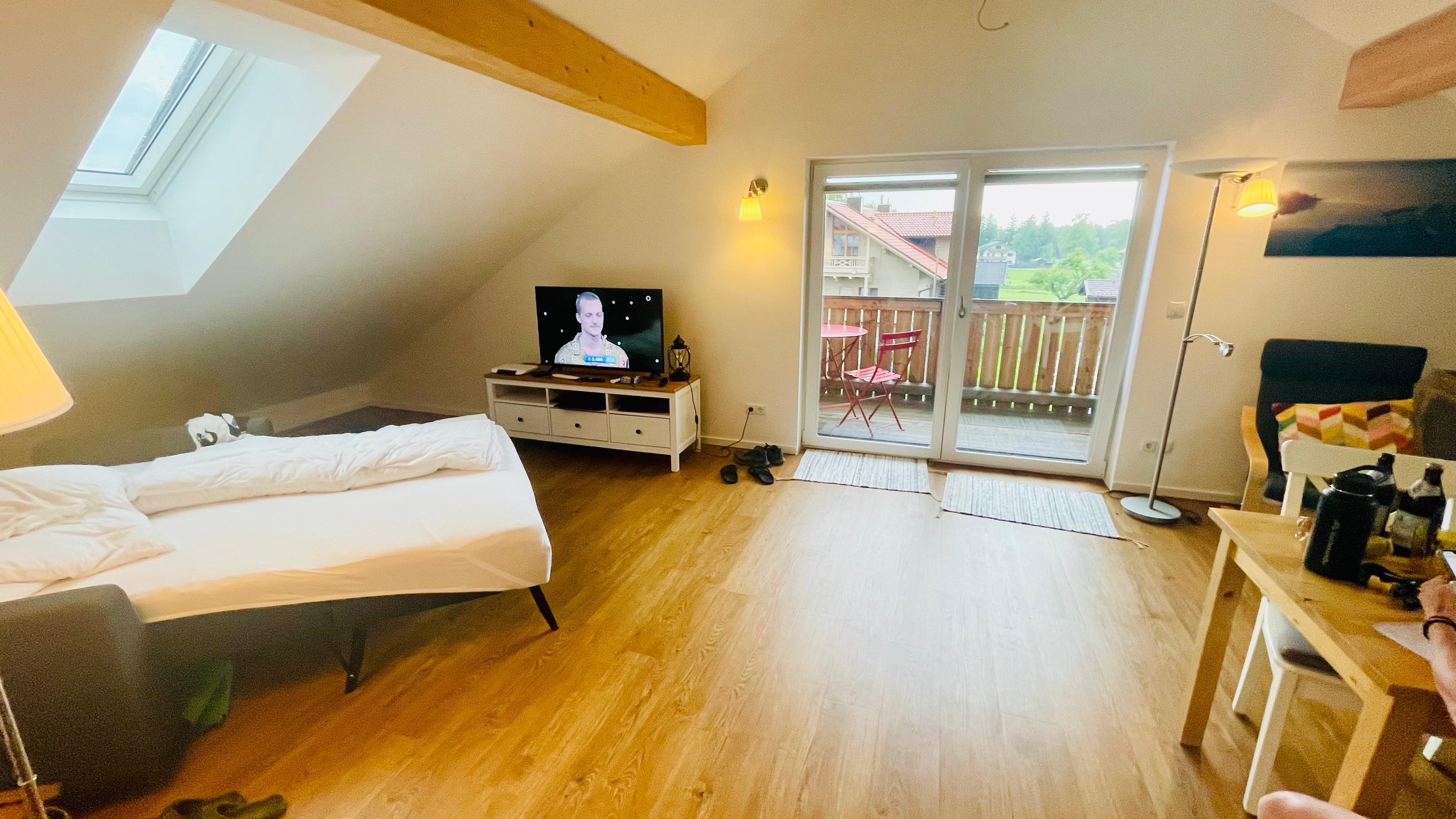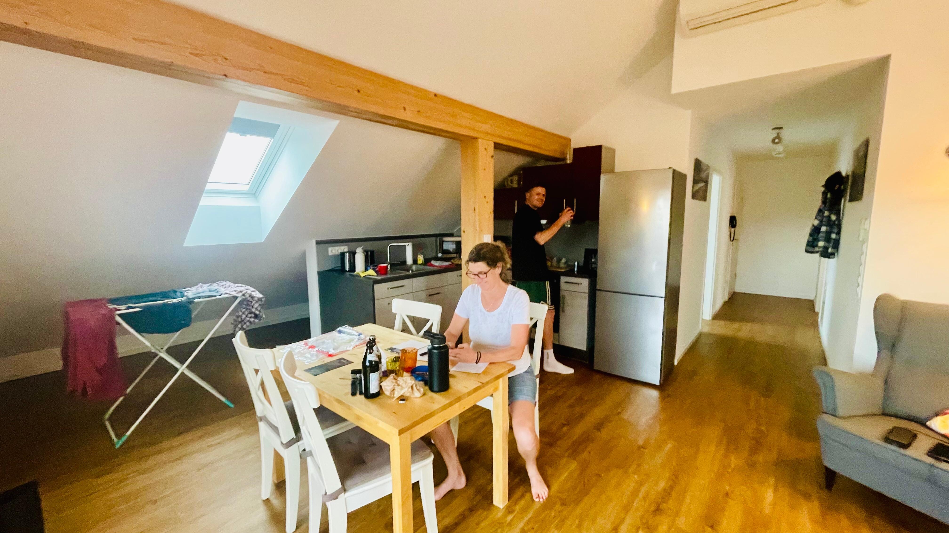 Wir haben unseren Aufenthalt der tollen Ferienwohnung sehr genossen!Der Check-in war problemlos. SchlĂŒssel lagen bereit.Als wir ankamen duftete es innen nach Holz - Mega! Die Wohnung ist sehr groĂzĂŒgig geschnitten, gerĂ€umig, hell und man blickt vom Balkon aus auf die Berge in der Ferne.Es gibt ein groĂes Doppelbett, in welchem wir herrlich geschlafen haben und eine Schlafcouch im Wohn-/Esszimmer.Die KĂŒche ist mit einer groĂen KĂŒhl-/Gefrierkombi, Senseo Maschine, Mikrowelle, Wasserkocher, Kaffeemaschine, Backofen, Induktionskochfeld, GeschirrspĂŒler und allen ĂŒblichen Kochutensilien sowie ausreichend Geschirr und Besteck ausgestattet. Alles in ordentlichen Zustand! Da gibt es nichts auszusetzen.SpĂŒltabs, SpĂŒli, SpĂŒllappen und GeschirrtĂŒcher liegen bereit und mĂŒssen nicht mitgebracht werden.In dem schönen hellen Bad stand die geile "Wuiderer Seife" bereit, die sehr sehr angenehm riecht. Man hat genĂŒgend AblageflĂ€che fĂŒr sein eigenes Zeug und ein kleines Regal steht auch zu VerfĂŒgung. Ausreichend Toilettenpapier ist vorhanden und mĂŒsst ihr auch nicht mitbringen.Was gibt es noch zu sagen?Der Stefan, der Vermieter, ist Ă€uĂerst freundlich und hilft bei allen Fragen weiter. Egal, ob es um Ausflugsziele ging, Fahrradwege, heimische Produkte oder ein Plausch am Nachmittag - wir wurden stets mit viel Enthusiasmus und Herzlichkeit beraten und betreut. Danke dafĂŒr, lieber Stefan!!! Fazit: Wir kommen sehr gerne wieder! Das nĂ€chste Mal ein paar Tage lĂ€nger und mit E-Bike :-)