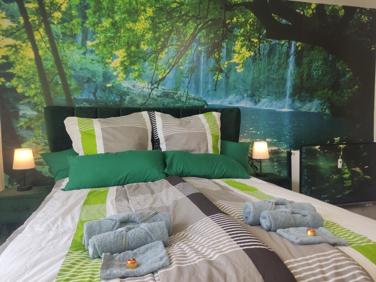 Cet immeuble non-fumeurs propose une laverie, un jardin et des barbecues. Cet appartement offre une machine à laver et une cuisine avec un réfrigérateur, une plaque de cuisson et un micro-ondes. Vous aurez aussi à disposition un patio, une TV connectée et une cafetiÚre ou une bouilloire.