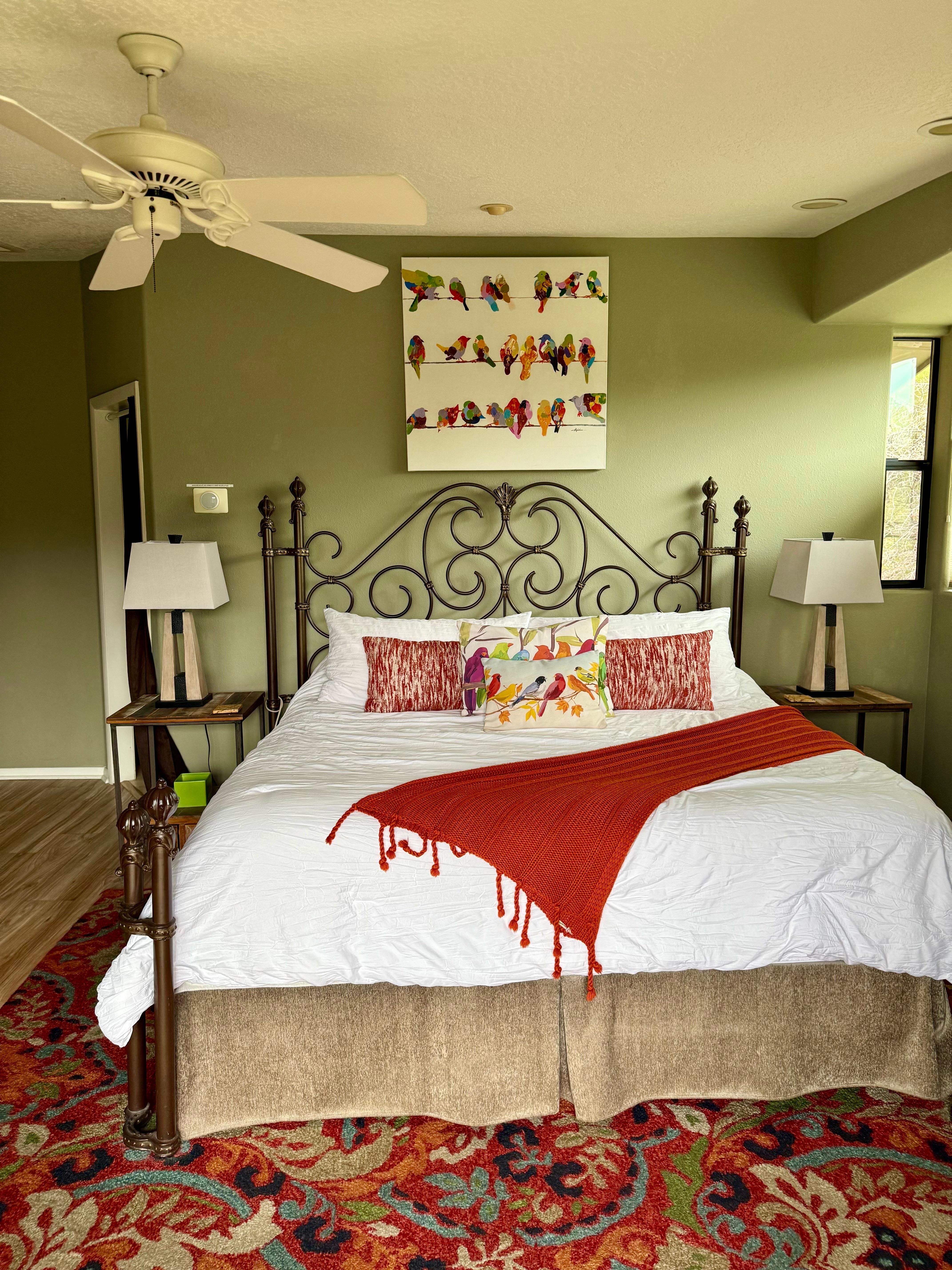 RĂ©veillez-vous dans la chambre principale en regardant les formations rocheuses spectaculaires. Une nouvelle fonctionnalitĂ© est l'ajout PUREROOM. Nous avons des oreillers hypoallergĂ©niques et des couvre-lits qui empĂȘchent les acariens de pĂ©nĂ©trer dans le lit. Le systĂšme d'eau a Ă©tĂ© ajoutĂ© pour Ă©liminer toutes les impuretĂ©s de l'eau. Sedona a une teneur Ă©levĂ©e en arsenic dans lâeau. Nous avons ajoutĂ© le systĂšme pour Ă©liminer ces toxines et vous fournir une bonne eau propre pour les douches et mĂȘme le spa.