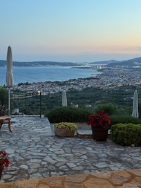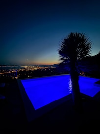 The house is located in such a place that the view is fantastic at all times, and breathtaking at night. It is in a very quiet environment, and ideal to accomodate 3 couples, or 1 couple and 4 children. Accomodating 8 people requires to use a couch in the living room as an additionnal bed.