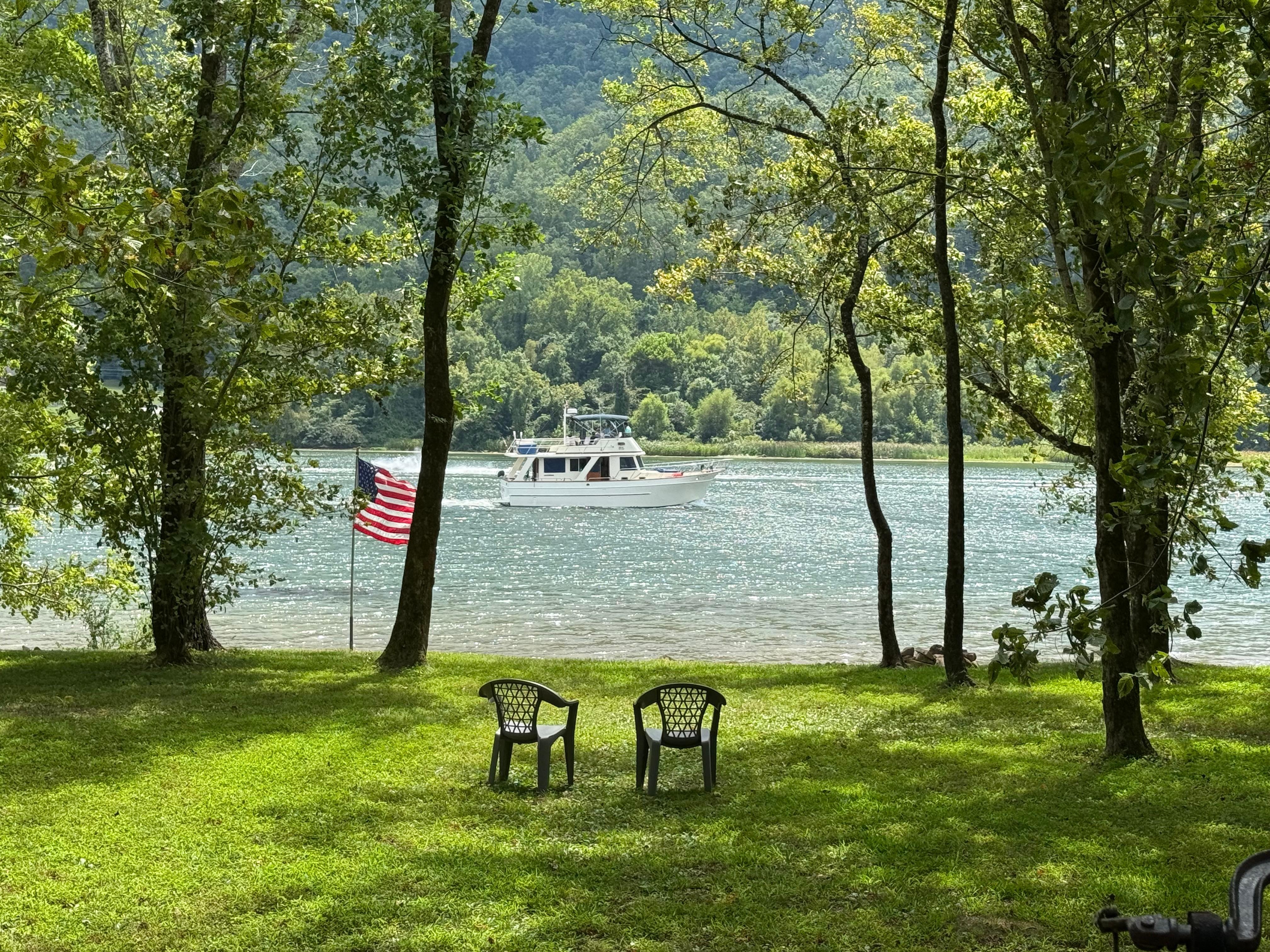 Le Tennessee River Gorge Island CabinsÂź n ° 1 se situe au milieu du TRG de 26 milles. Il fait partie d'une propriĂ©tĂ© «PRIVĂE» de 13 acres avec une chaussĂ©e sur l'Ăźle TRG. VOUS NE POUVEZ PAS VOIR OU ENTENDRE UNE CABINE D'UNE AUTRE. Câest la partie la plus belle, intacte et la plus large de TRG. TRG Island est Ă 3 pieds de la riviĂšre. "AUCUN ESCALIER OU TERRE". La riviĂšre Tennessee ici est large de 1/2 mile et ne se dĂ©place que d'environ 3 mph TRG fait 26 miles de long et nous sommes situĂ©s au milieu de celui-ci au repĂšre 440 miles. Plage en pente graduelle jusqu'Ă une profondeur de 65 pi. "Ă l'ombre toute la journĂ©e". Avec 1800 mĂštres de montagnes et de falaises tout autour de l'Ăźle, le plus haut sur les 650 miles de la riviĂšre Tennessee. Seulement 3 'pieds. Ă l'eau.