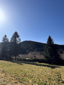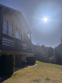 Grand calme. Grande baie vitrée donnant directement sur terrasse de 15 m2 et pelouse ou les enfants peuvent jouer sans craindre la circulation. Vue sur sapins et Vallée. Centré entre centre Ville et Pistes de skis. Box pour skis - Place de parking privé -