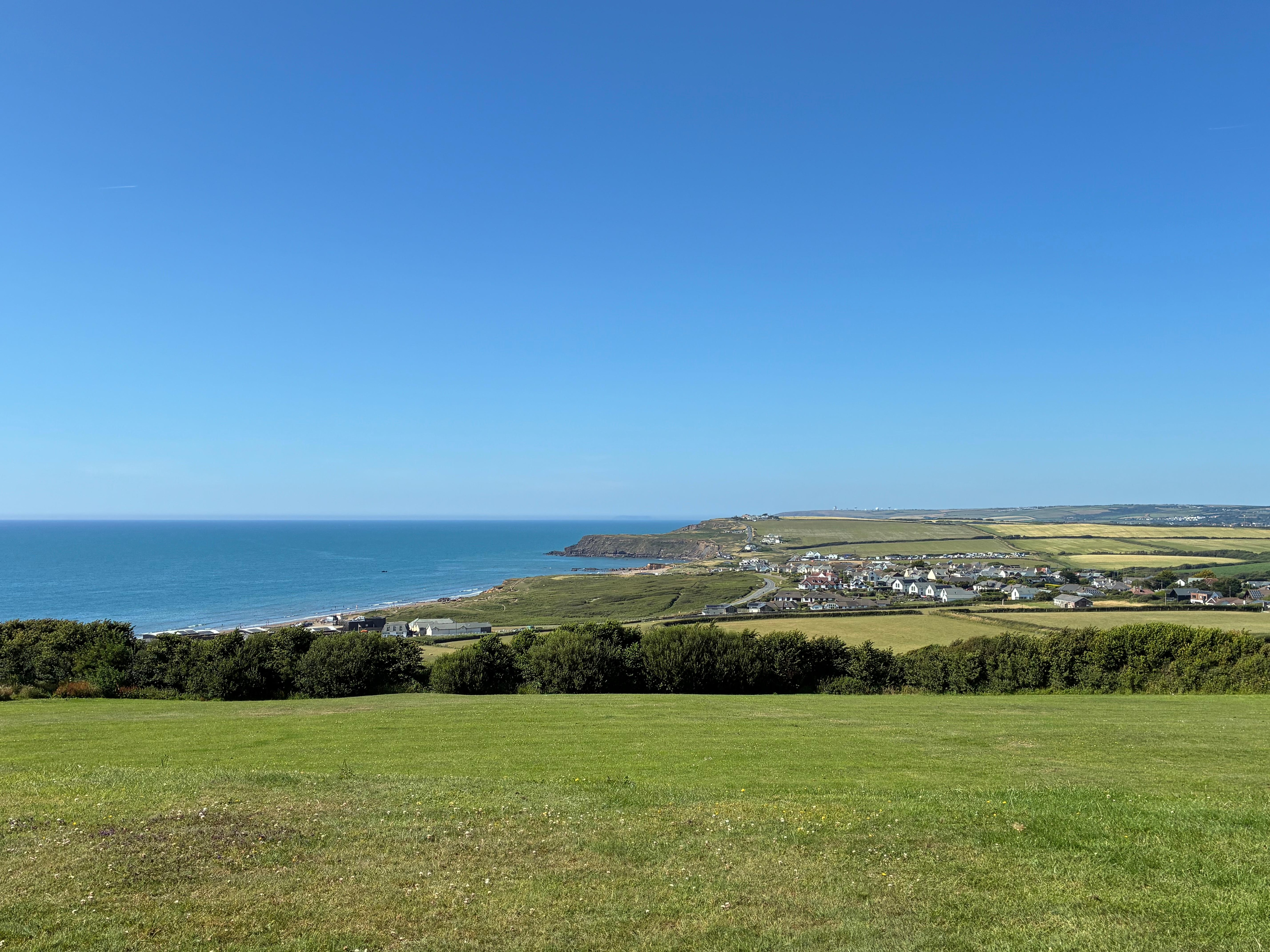 Le chalet est sur une colline surplombant le magnifique littoral de Widemouth Bay, Cette grande plage est Ă 10 minutes Ă pied