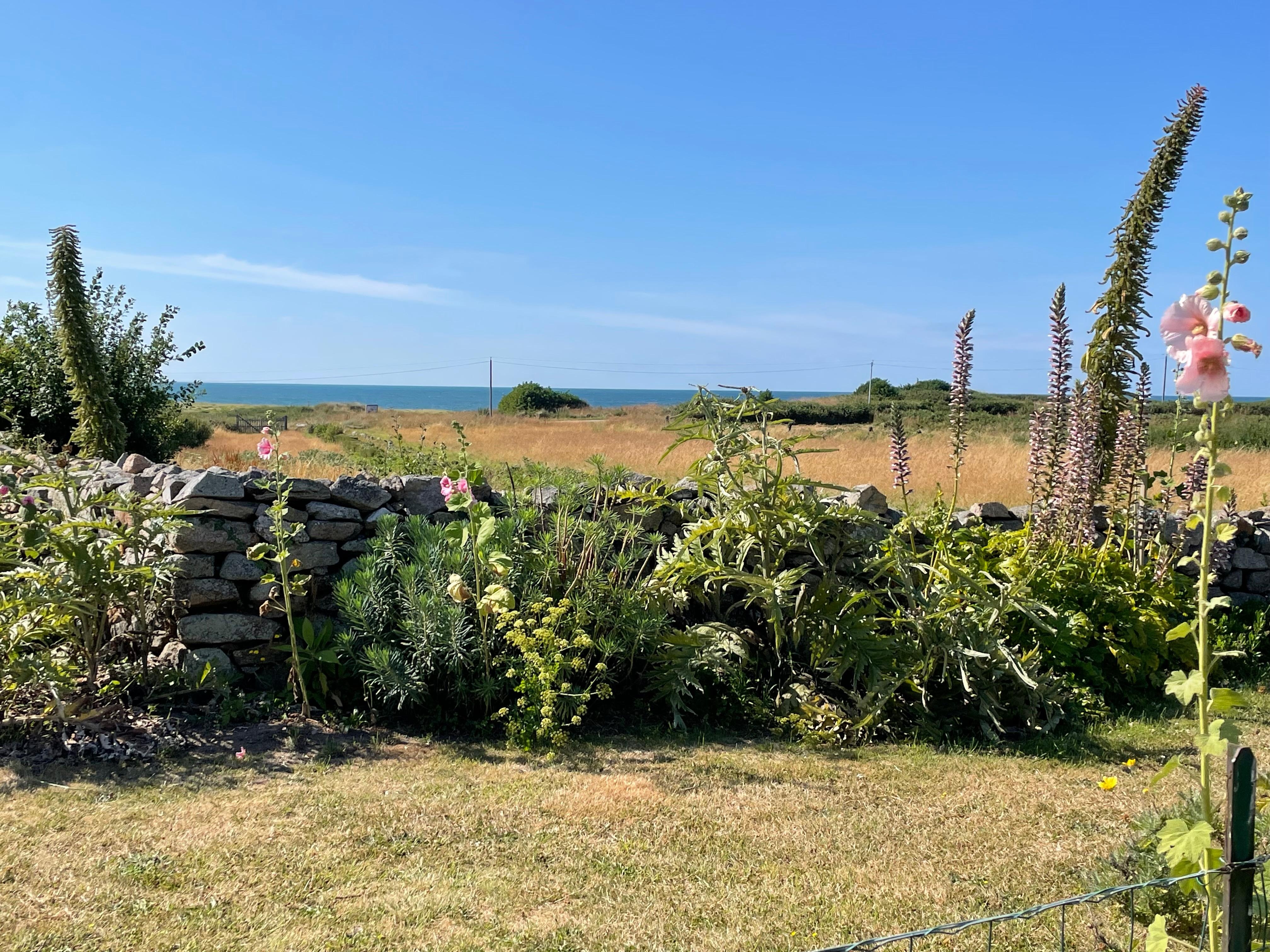 A l'extérieur, le mobilier de jardin, (transats, tables et chaises, barbecue) vous permet de profiter de l'extérieur. Celui-ci constitué de plusieurs espaces : sur le devant de la maison une petite cour ensoleillée, (idéale en fin de journée). A l'arriÚre, une cour à proximité de la véranda, et le jardin vue mer avec ses magnifiques couchers de soleil.
