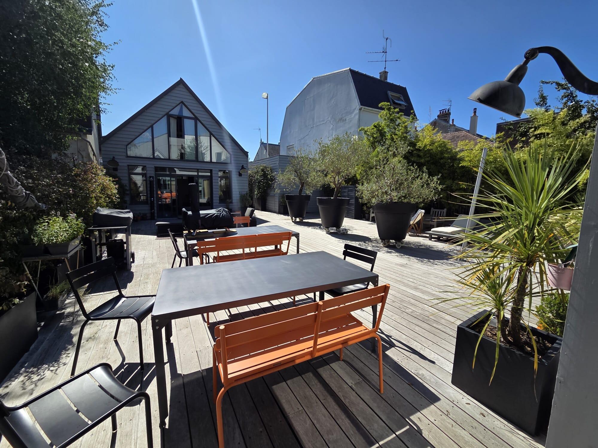 DĂ©coration soignĂ©e, grande terrasse en teck de 150 m2,en plein coeur de Deauville , Ă 200 m de l'hippodrome et Ă 2000 m du centre Ă©questre international, et 3km du golf le plus proche(New Golf BarriĂšre) idĂ©alement situĂ© Ă 5 mn Ă pied du marchĂ© de Deauville et de la place Morny. Le trĂšs bon compromis entre le centre ville trĂšs/trop animĂ© en haute saison et une rue calme et peu passagĂšre. Maison principale sous verriĂšre, baignĂ©e de lumiĂšre naturelle quelque soit la saison, extrĂȘmement agrĂ©able Ă vivre, climatisĂ©e et de plain pied. IdĂ©ale pour des sĂ©jours en famille : deux maisons indĂ©pendantes reliĂ©es par la terrasse Ă©quipĂ©e en teck qui font le bonheur des jeunes enfants.