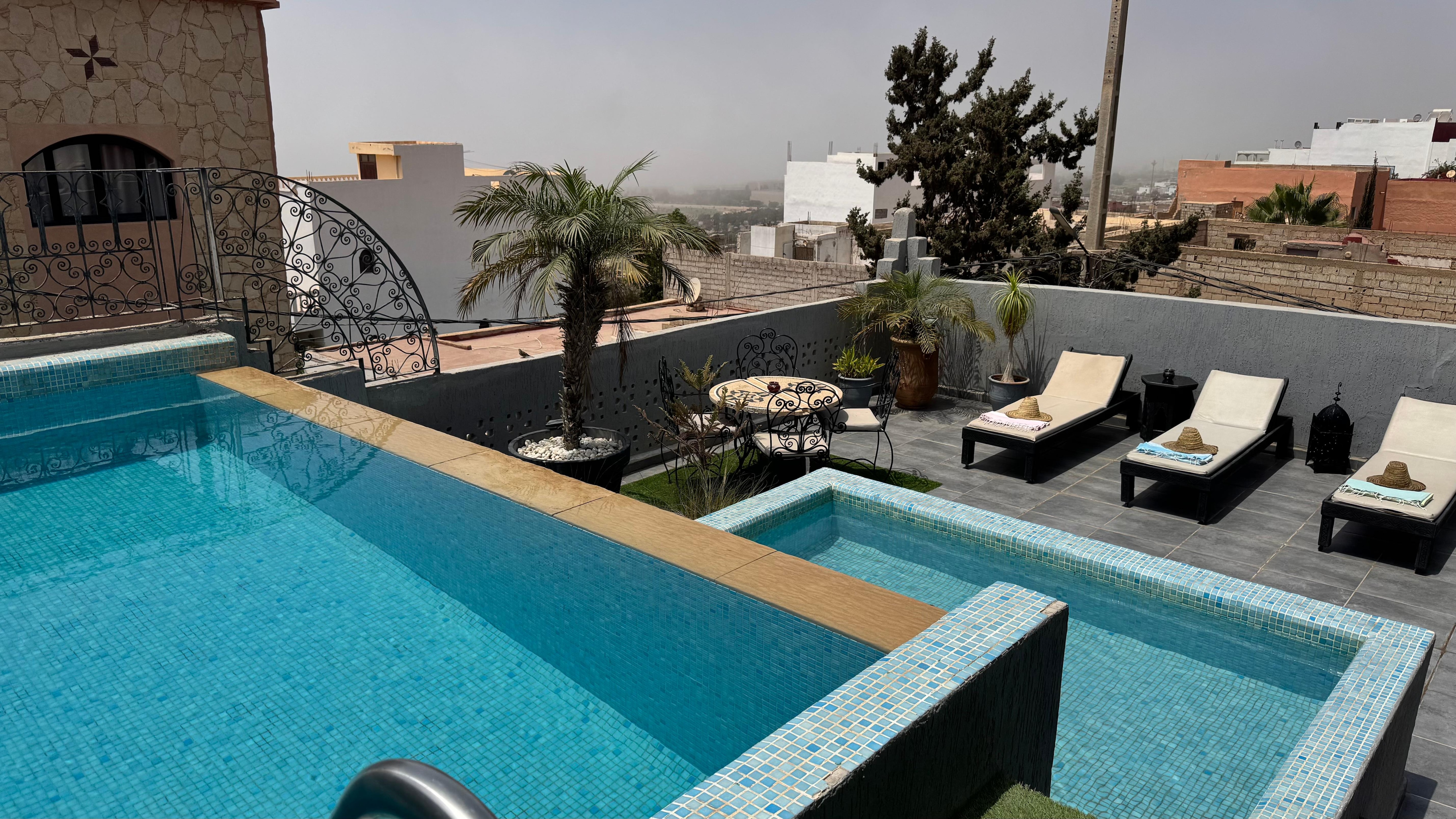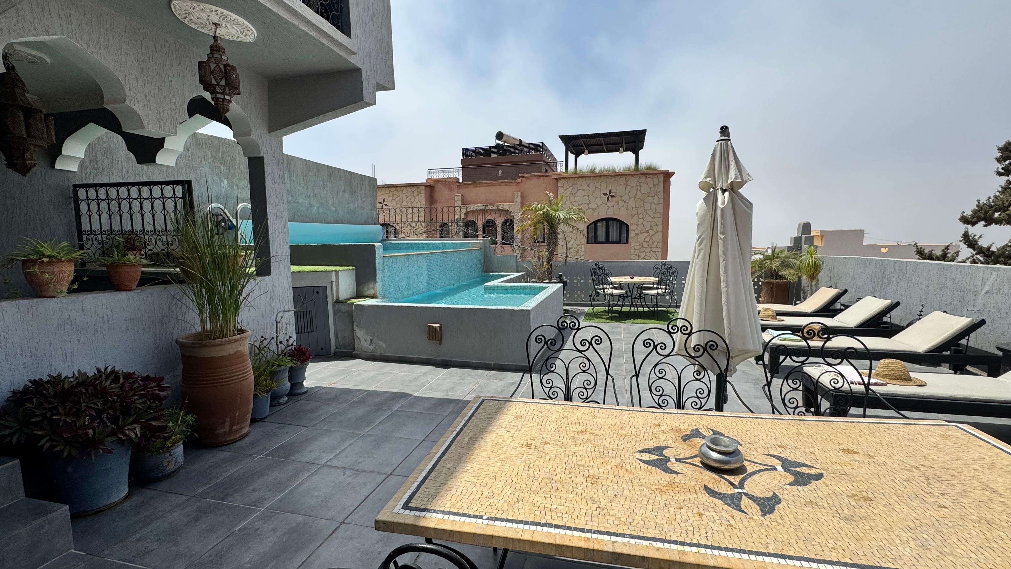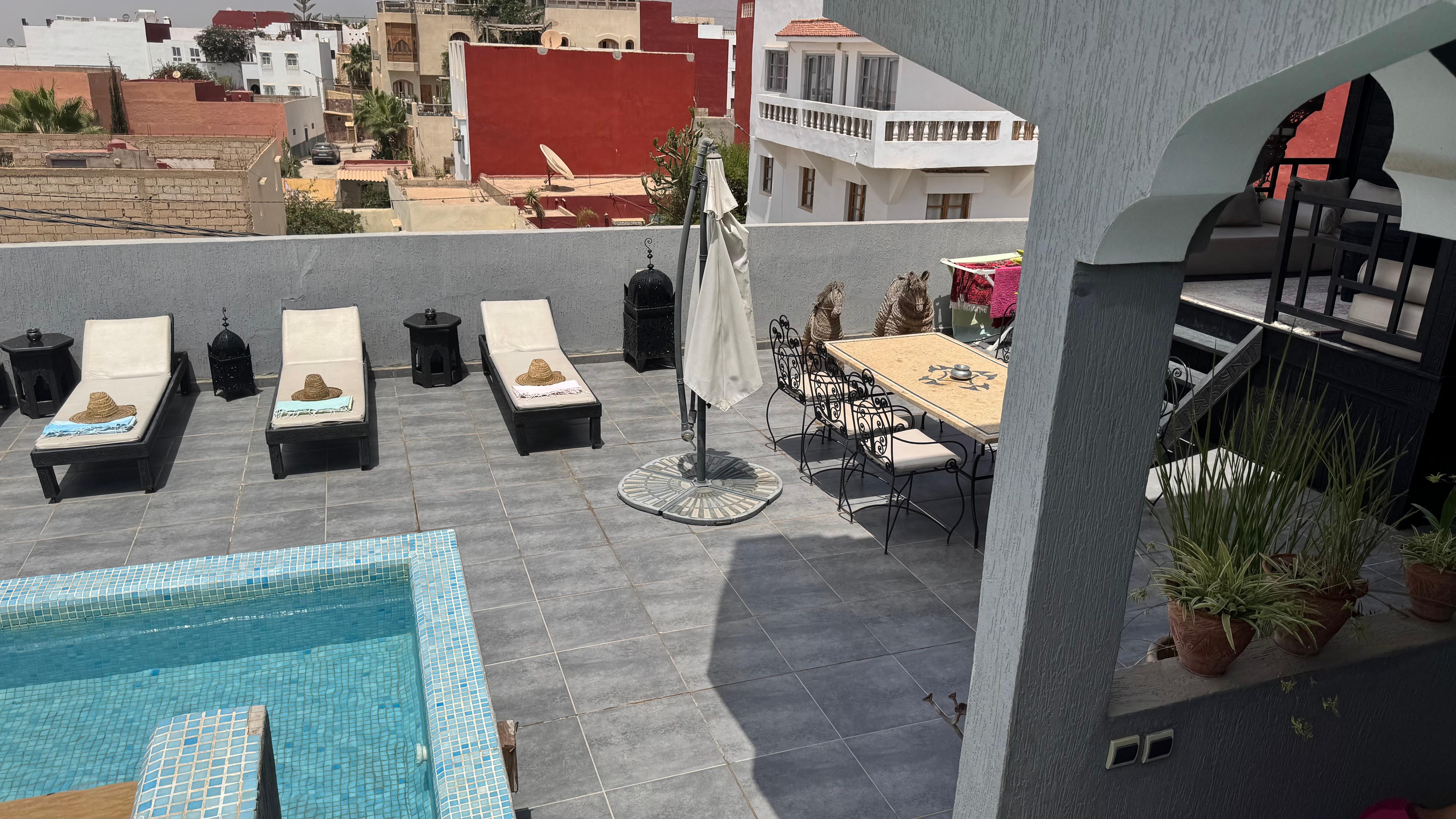 Arrivés de nuit, nous avons dans un premier temps découvert l'intérieur de la maison dont la décoration est un subtil mélange d'éléments marocains (nos enfants ont beaucoup aimé le cadre avec les babouches) et contemporains. DÚs le lendemain, nous avons apprécié de prendre notre petit déjeuner sur la terrasse et avons fait connaissance de Fatima, la Gouvernante. De notre voyage, je retiendrai: la maison et sa décoration, mon mari, les tajines de Fatima ( surtout celle aux abricots) et la climatisation! et pour mes enfants, les bananes d'Aourir, les ballades en chameaux et en quad sur la plage, mais surtout les aprÚs midi passées dans la piscine! En bref de superbes vacances. nous y retournerons surement, mais avant que le petit village ne devienne en 2017 un complexe touristique, avec la construction de son golf et ses 5 hotels de luxe - Tarazouth Bay. Charlotte P.