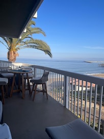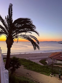 Prenez un café le matin et un verre de vin le soir sur votre grand balcon meublé donnant sur l'océan et la jetée. Ou prenez les chaises de plage, le parasol et la glaciÚre fournis et profitez du soleil sur le sable ...
