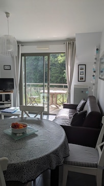 Salon avec cuisine - 1 chambre séparée et un coin cabine (pour un enfant ou un adulte). Location pour 3 personnes maximum.