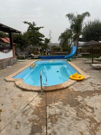 Une grande villa spacieuse avec piscine privée chauffée de 8m x 4m (payant), jacuzzi, en bordure d'un petit village espagnol. Une vue imprenable sur les montagnes et la ville locale Estacion de Cartama. Accueille 18 personnes dans 8 chambres. EntiÚrement climatisé (payez au fur et à mesure des mÚtres). 6 salles de bain (4 en-suite) Salle de jeux avec Air Hockey, table de billard, billard bar et fléchettes, tennis de table. connexion wifi pour ceux qui souhaitent apporter leur ordinateur portable. Chaßnes de télévision anglaises. Cuisine entiÚrement équipée. Propre bar avec biÚre pression. Parc de jeux pour enfants, Piscine extérieure privée chauffée de 8m x 4m avec toilettes indépendantes, transat à baldaquin, transats et ombrage. Grande terrasse un espace avec barbecue. Jardin et parking jusqu'à 5 voitures. Toutes les chambres disposent de la climatisation payante au fur et à mesure mÚtres, draps, serviettes et serviettes de piscine sont fournis, changés Il y a 2 lits bébé, lit de voyage, chaises hautes et poussette pour les clients sans frais supplémentaires, électricité, gaz et frais de nettoyage sont inclus dans le prix de location. Cuisine équipée lave vaisselle, lave linge, micro ondes, cuisiniÚre.