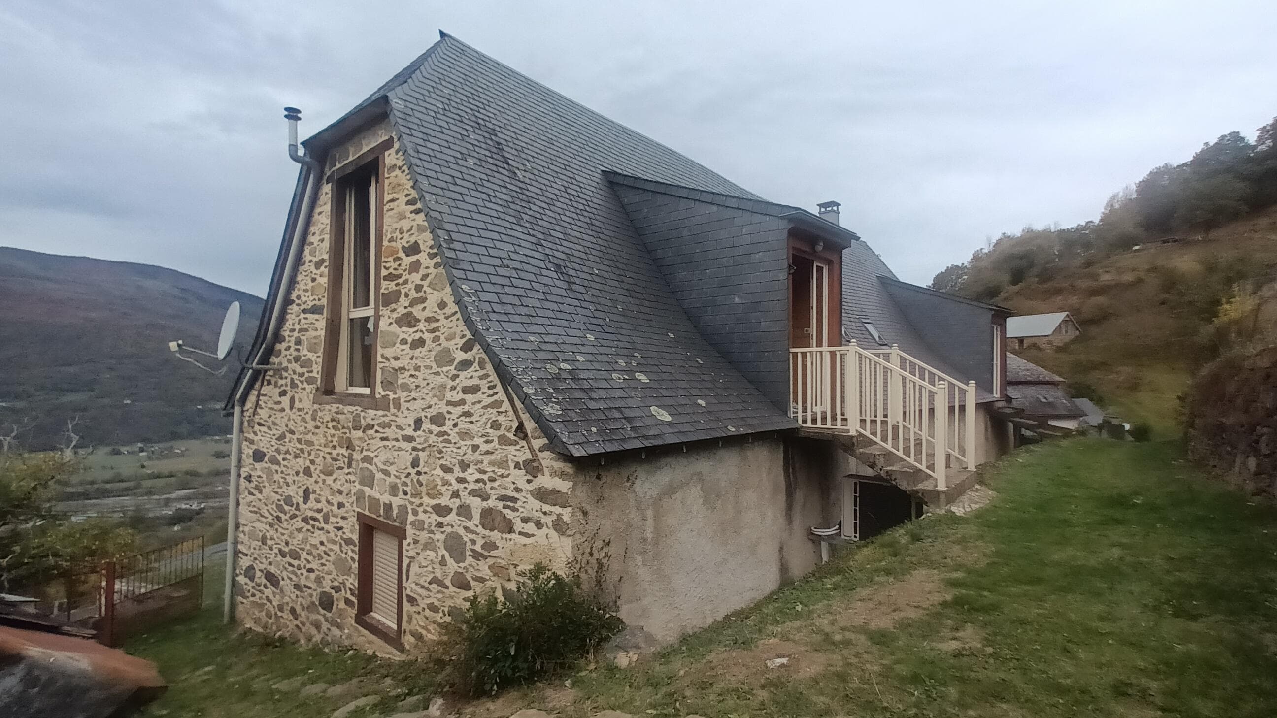 Beau gßte avec pierres et poutres apparentes et vue sur les sommets entourant la vallée d'ArgelÚs-Gazost.