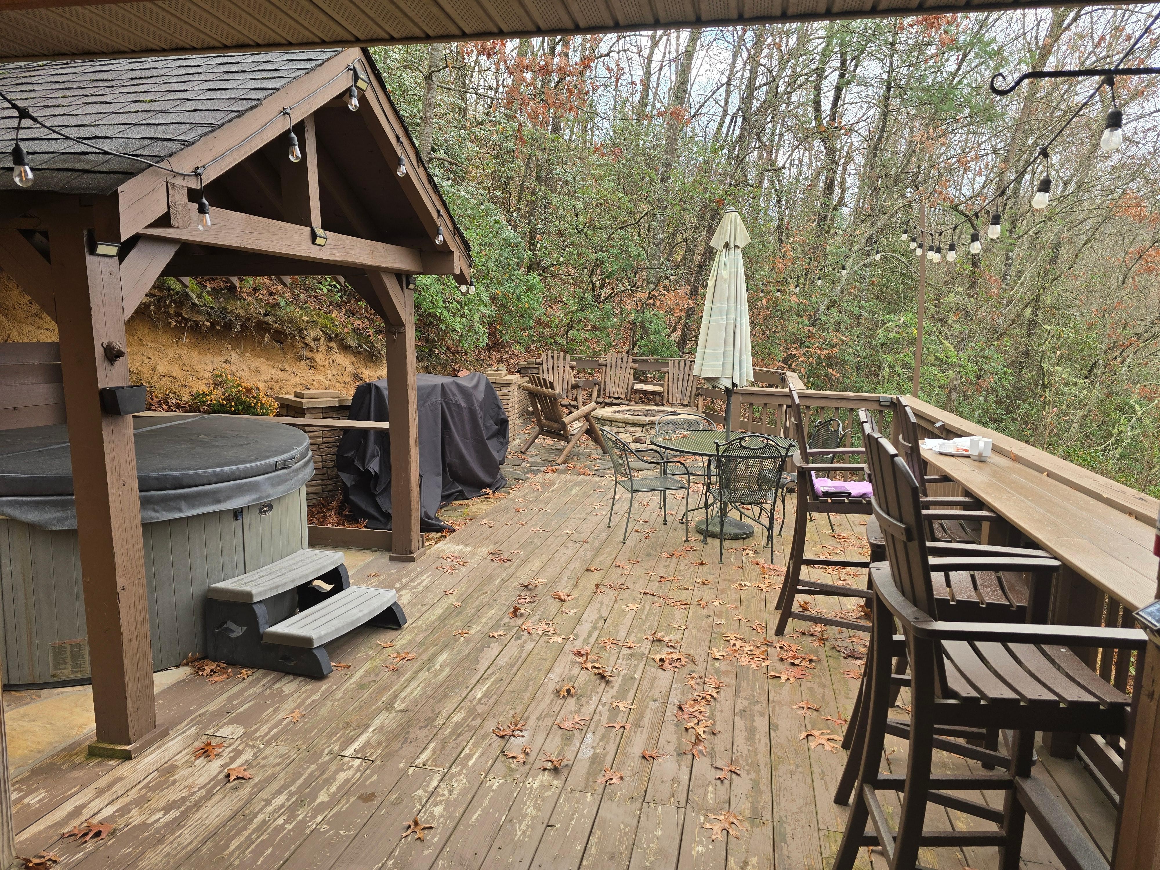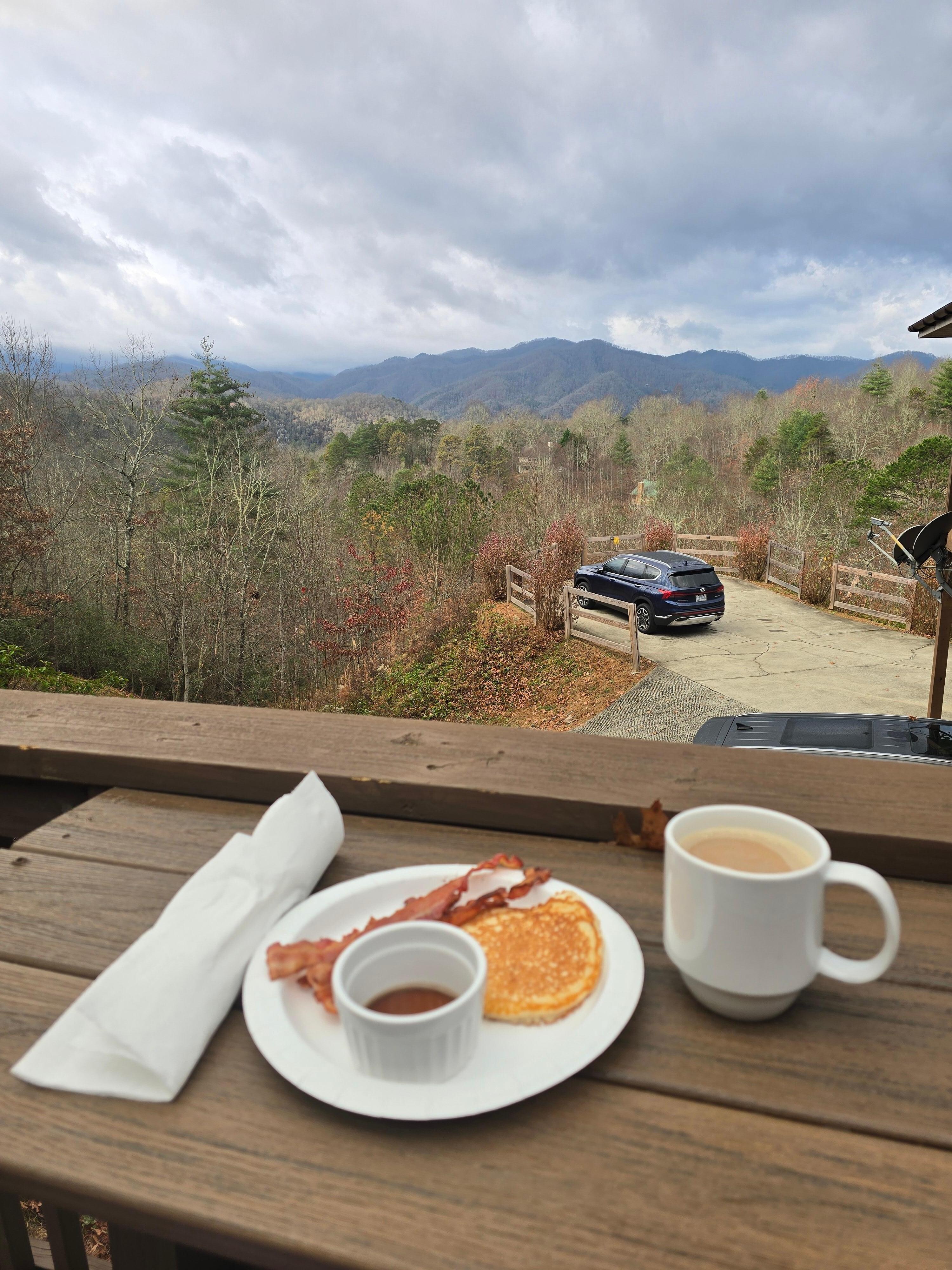La grande terrasse enveloppante offre une vue imprenable sur les montagnes Smoky. Sirotez votre café du matin en vous prélassant sur les chaises extérieures, jouez au ping-pong et passez vos soirées dans le bain à remous privé.