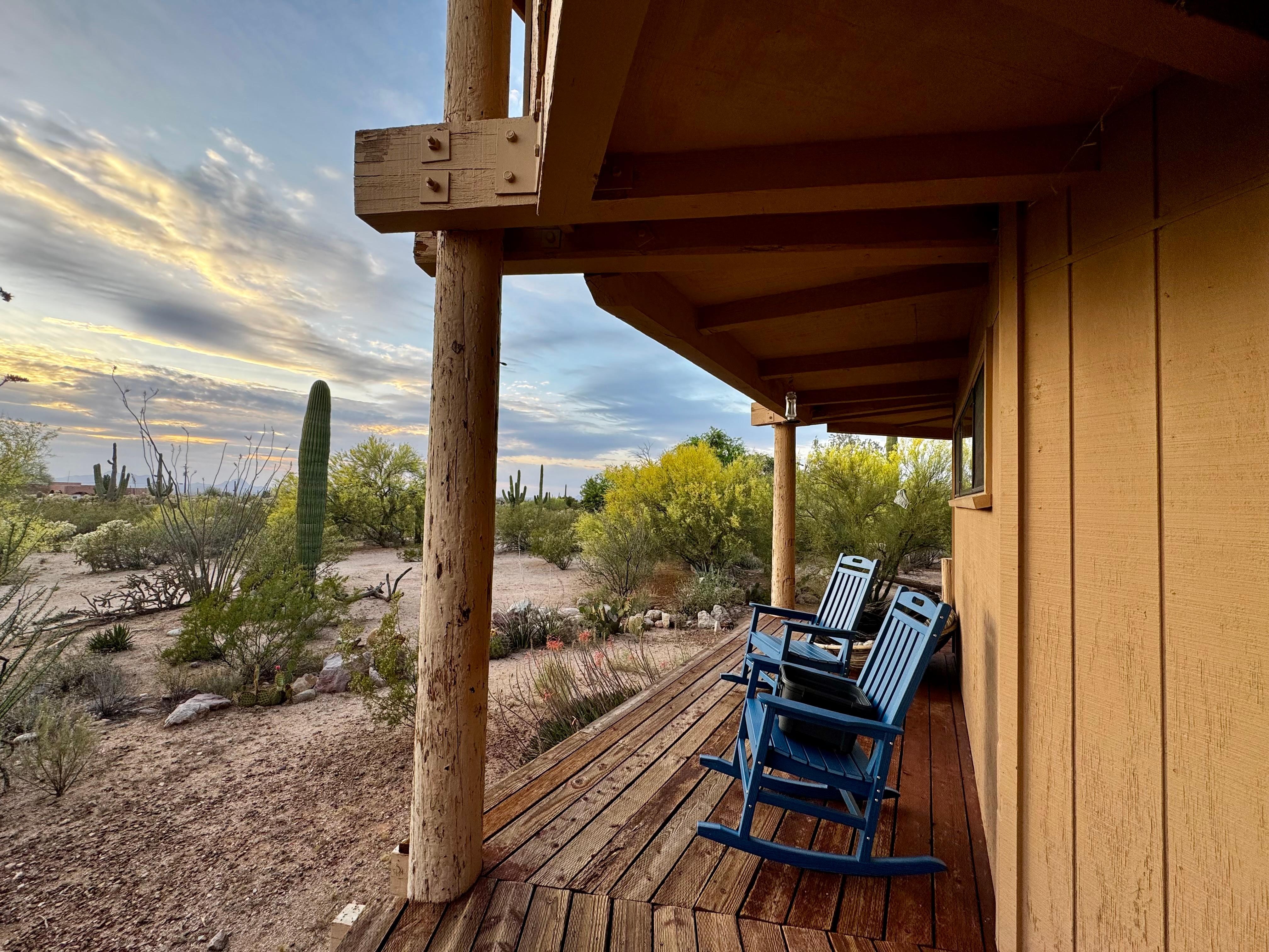 We were looking for a one-of-a-kind home adjacent to Saguaro National Park West with natural desert privacy and plenty of room for guests to join us. The bobcats living in our mesquite tree along with an established colony of insect eating bats in their bat houses sold us on No Pants Ranch!
