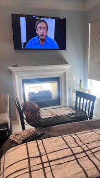 Privé un lit, une salle de bain, intérieur avec cheminée extérieure, télévision grand écran et cùble, Wifi gratuit, fauteuil de massage, petit réfrigérateur, micro-ondes, table et chaises, lit escamotable pour voiturette de golf pour enfant disponible; petit chien ok. Grande belle piscine avec spa deux portes plus loin. Cour avec cheminée, chauffe-terrasse et table et chaises rembourrées. TrÚs calme dans un quartier sûr, de superbes vues sur la montagne de l'avant. Ernie est juste un mile away et a eu un grand bar et un restaurant avec une vue imprenable sur le golf et les montagnes.