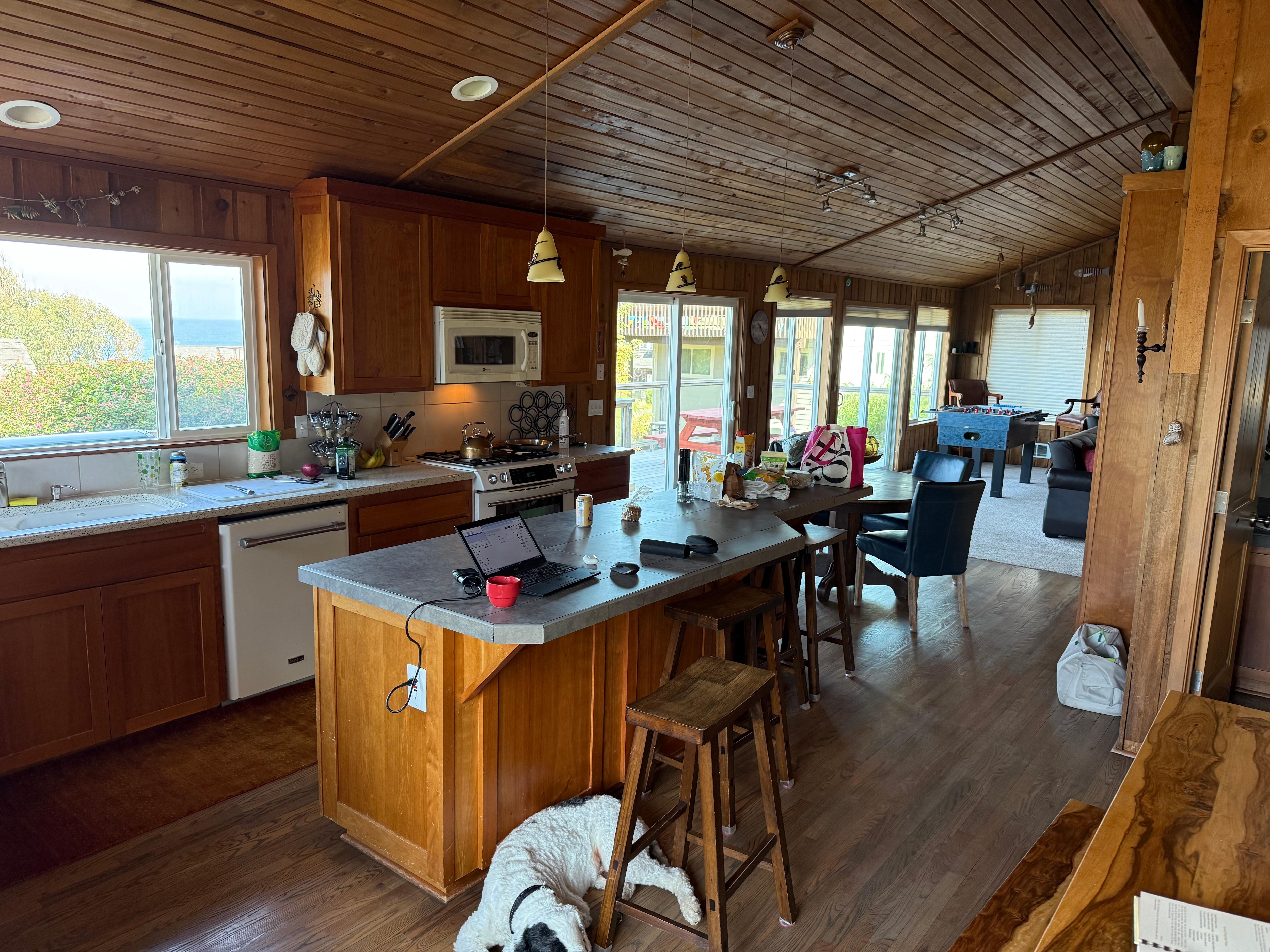 Situé dans le quartier calme et bordant l'océan de Road’s End, à Lincoln City, le Road’s End Roost offre aux visiteurs un chez-soi détendu et confortable, leur permettant de s'installer à la plage. Plongez dans le meilleur de ce que la vie côtière peut offrir sur la terrasse de la maison tout en regardant le puissant choc des vagues du Pacifique sur le rivage, remplissez vos poumons d’air pur et écoutez le son des vagues. Le charmant décor côtier de la maison et son mobilier confortable créent une atmosphère invitante propice à des réunions sans stress avec des amis et la famille. Depuis la cuisine, la salle à manger et le salon du Road’s End Roost, de grandes fenêtres permettent d’obtenir une superbe vue sur l’océan et le surf. Créez de délicieux repas dans la cuisine spacieuse ou sur le gril avant de prendre un repas sur le pont, puis de faire griller des guimauves dans le foyer. Lors de nuits plus fraîches, rassemblez-vous autour de la table de la salle à manger pour partager de vieux souvenirs, raconter des histoires et jouer à des jeux tout en profitant de la chaleur et de la lueur du foyer à gaz. Relevez le défi lors d'un match amical autour du baby-foot ou d'un jeu vidéo dans le salon tout en écoutant le claquement de la cheminée à bois. Une cour entièrement clôturée fournit un endroit sûr pour les enfants et les animaux domestiques pendant que les adultes sirotent leur café ou leur cocktail du soir sur la terrasse avec vue sur l'océan.