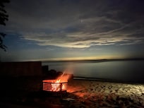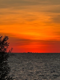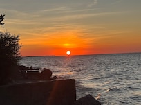 Property has it's own 40' wide x 100' deep private walled sand beach with recently upgraded patio (2023) and reinforced walls (2023), nautically-appointed Lanai, wood deck w/tables & benches/chairs, and Weber gas grill (stored in garage). Spectacular lake views, sunrises and sunsets from the beach, Living Room and Lanai!! The views from the Primary Bedroom, Living Room, 2 upstairs bedrooms and Lanai are priceless! Also, the daily parade of Canada Geese up and down the shoreline is worth keeping an eye open for them, especially in the Spring with their ducklings trailing behind. Many times they make a stop on our beach! Book with us and see for yourself!