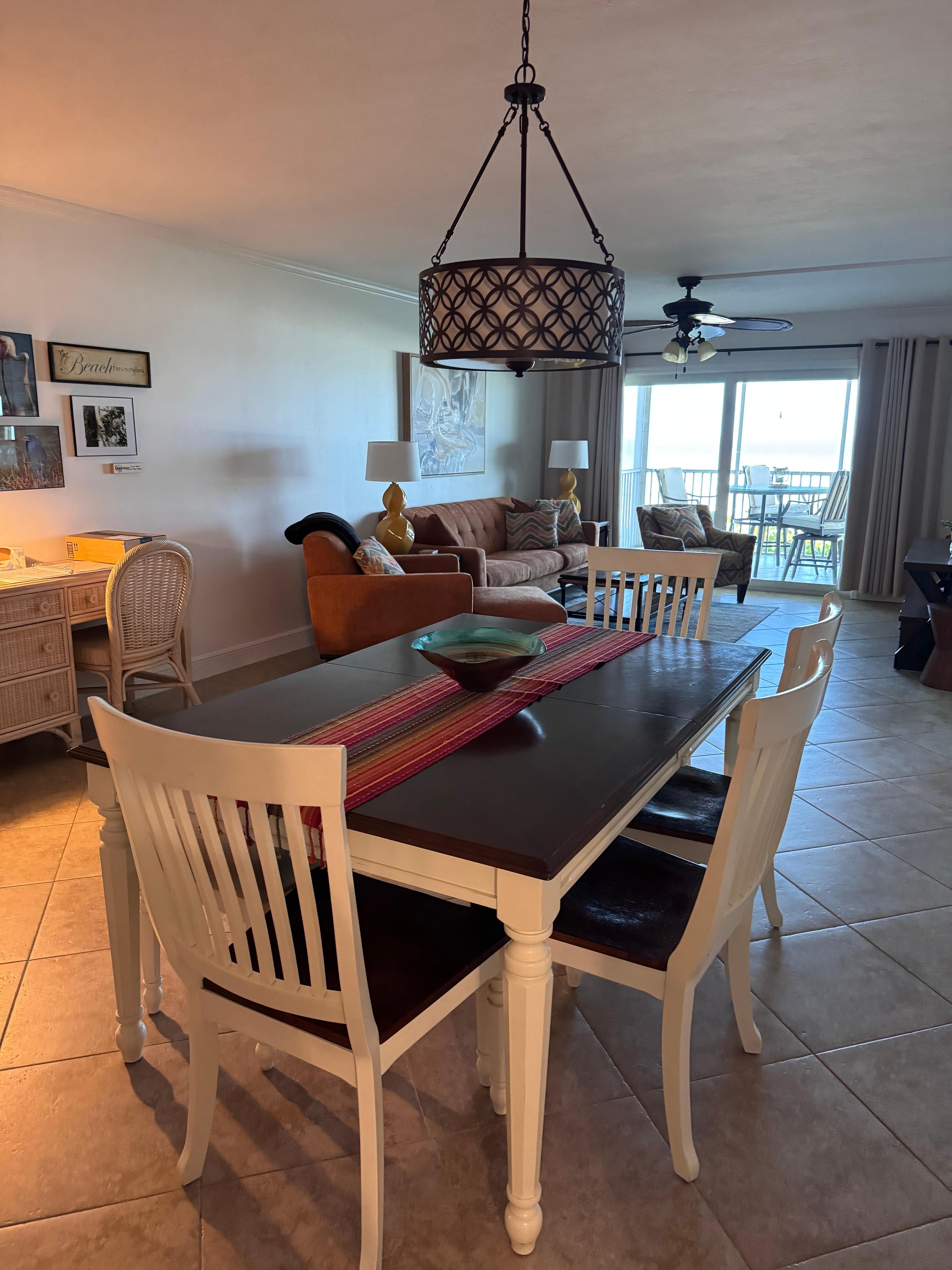 Le nouveau salon comprend un canapé-lit queen-size, une causeuse et une chaise latérale avec une télévision à écran plat de 55 pouces et une chaßne hi-fi surround Sony sans fil que vous pouvez connecter à votre propre appareil. Un bureau, un ordinateur portable de 15 pouces et une imprimante sans fil sont à votre disposition. à travers le salon et la chambre principale, vous pouvez entrer dans le balcon de 26 pieds face à la plage pour profiter du lever du soleil avec votre café ou vos couchers de soleil le matin et une boisson de fin de soirée. Vous avez une vue panoramique imprenable sur la plage de sable blanc et le golfe du Mexique.