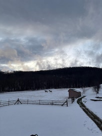 Venez sĂ©journer dans notre suite Ă la campagne, nichĂ©e au deuxiĂšme Ă©tage de lâĂ©table de notre gentilhomme. C'est plus de 1000 pieds carrĂ©s de plaisir confortable, comprenant un lit queen dans la chambre Ă coucher, un salon Ă concept ouvert et une cuisine complĂšte, une grande salle de bain avec laveuse et sĂ©cheuse et une entrĂ©e spacieuse. Un canapĂ©-lit queen-size permet d'ajouter deux personnes supplĂ©mentaires dans le salon. De plus, il y a un pont de 12âx36 âavec siĂšges pour lâĂ©tĂ© Avec la toile de fond du Jiminy Peak Mountain Resort Ă 2,5 km, il est idĂ©al pour une escapade d'un week-end ou de longues vacances si les nombreuses attractions de la rĂ©gion vous retiennent plus longtemps.