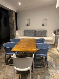 La salle Ă manger et le salon joliment meublĂ©s sont trĂšs spacieux (pouvant accueillir jusqu'Ă 12 personnes) avec des portes-fenĂȘtres qui mĂšnent Ă la terrasse et Ă la piscine.
