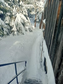 - local à skis et chaussures, au pied de l'escalier d'accÚs, à l'extérieur