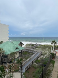 Nous avons deux balcons! Les deux ont des meubles confortables et une vue latérale imprenable sur la plage et le golfe.
