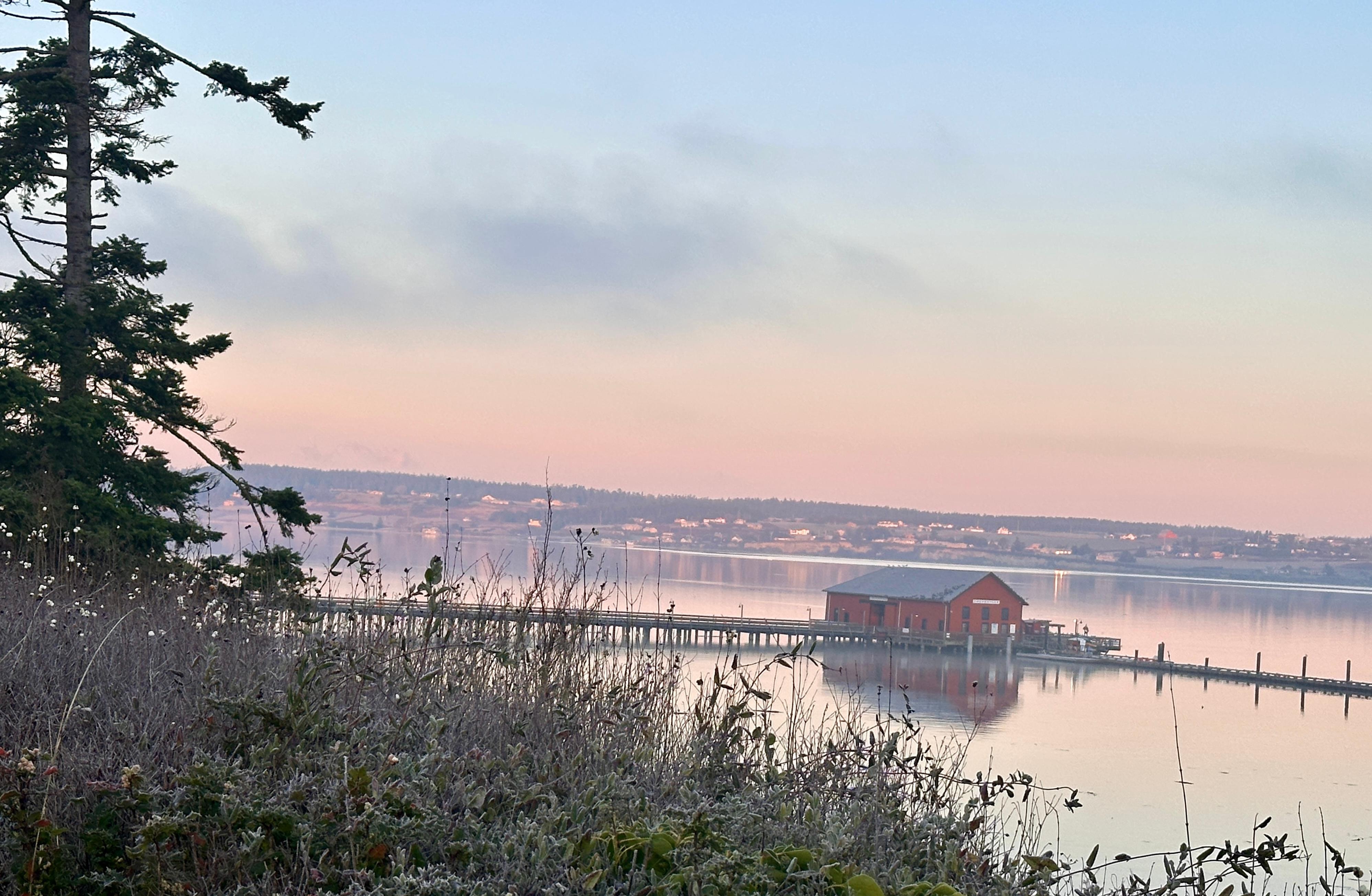 La chambre privée est spacieuse et confortable, a un lit queen bien aménagé, et une chaise de lecture rembourrée confortable et une vue sur l'eau et le soleil incroyable se détend d'un cÎté et le centre-ville historique de Coupeville de l'autre !!