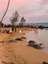 Il est une promenade cinq minutes tranquille et belle le long de la voie verdantly paysager qui vous emmÚne à primé Poipu Beach. A 5 minutes de marche dans la direction opposée vous amÚne à majestueux Naufrages plage avec elle est à couper le souffle et les vagues déferlantes paysages bordant le Grand Hyatt Kauai. Les propriétaires ont amoureusement fourni un wagon de plage pour faciliter le transport de tout votre équipement de plage et l'océan.