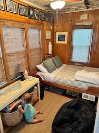 Il y a aussi une salle de bonus dans le salon qui a un lit de jour confortable. Nous l'appelons la "salle Hemingway" car le décor est inspiré du bateau d'Hemingway, Pilar.