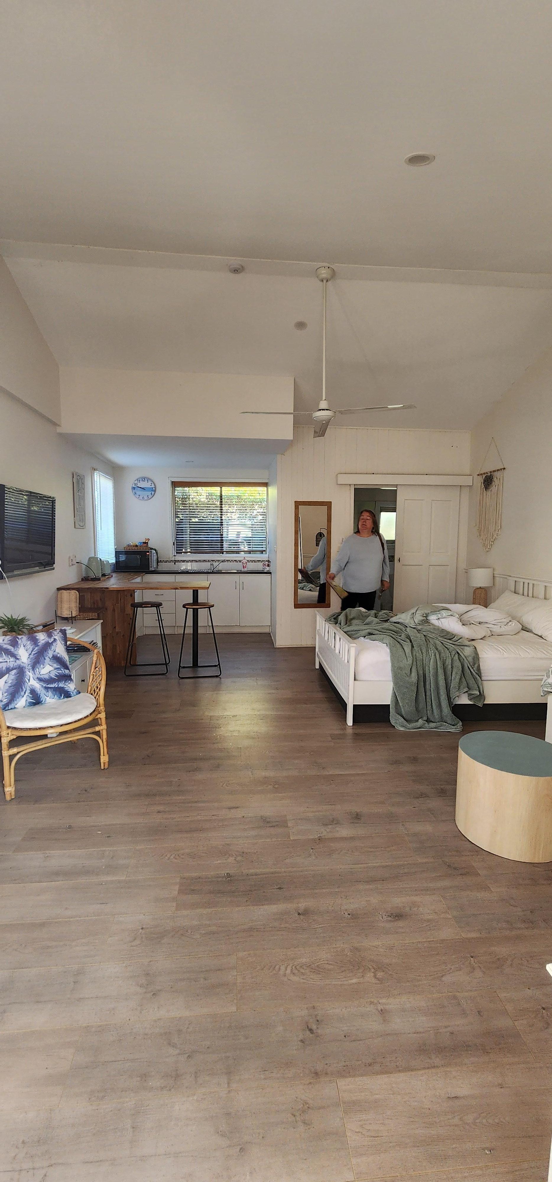 Situé dans une cour isolée et séparé de la résidence principale, ce studio décloisonné indépendant comprend une chambre, un salon, une kitchenette entiÚrement équipée et une salle de bains.