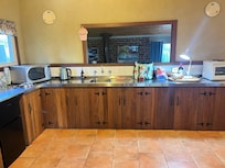 · Grande cuisine dĂźnatoire avec rĂ©frigĂ©rateur, poĂȘle Ă©lectrique, micro-ondes, four de paillasse, bouilloire et grille-pain