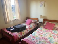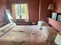 Deux chambres: principale avec lit queen, deuxiĂšme avec lits jumeaux simples.