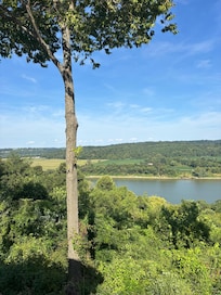 Le nid d'aigle est une cabane en rondins nouvellement construite, authentique et artisanale avec toutes les commodités modernes. Il se trouve sur une falaise surplombant la riviÚre Ohio et les terres agricoles sereines du Kentucky. Situé à 5 minutes de la I-64 dans le comté rural de Crawford, Indiana, la cabine est facilement accessible. Bien que le site ne soit pas totalement isolé, les clients ont beaucoup d'intimité. La cabine peut accueillir 6 personnes dans 3 chambres et dispose de 2, 5 salles de bains. Il contient également une cuisine entiÚrement équipée, un barbecue à gaz extérieur et un bain à remous privé (frais supplémentaires de 25 $). Asseyez-vous sur le pont couvert et regardez passer les bateaux fluviaux!