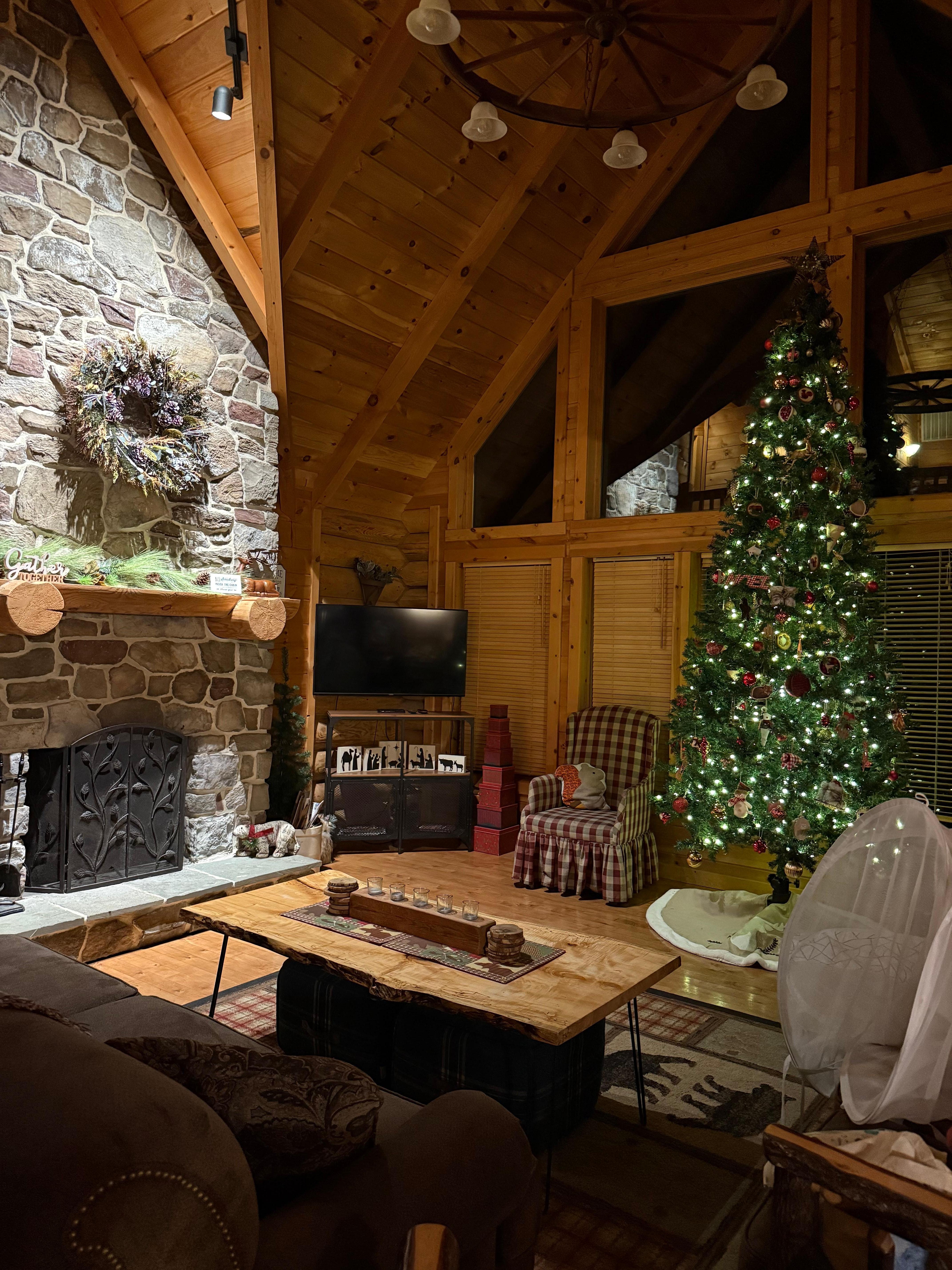 SALON INTĂRIEUR: 2 tĂ©lĂ©visions par cĂąble Ă Ă©cran plat, lecteur DVD, touches de bois authentiques, fenĂȘtres du sol au plafond, plafonds voĂ»tĂ©s, table Ă manger formelle, cheminĂ©e en pierre, amĂ©nagement ouvert, mobilier en rondins, chambre d'enfants avec jouets, jeux de sociĂ©tĂ©