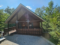 Galerie photos de lâhĂ©bergement NOUVEAU! Cabine confortable de Sevierville: terrasse et bain Ă remous Ă 2 niveaux
