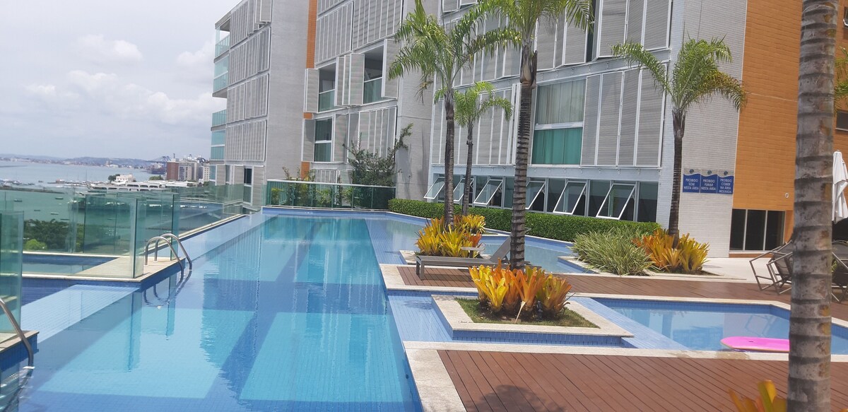 cet appartement vous donne rendez-vous à Salvador sur la plage, dans le quartier Centre-ville de Salvador. Si les fanas de shopping adoreront l'emblématique Centre commercial Salvador, tous les voyageurs tomberont amoureux de la beauté naturelle qui s'offre à leurs yeux aux célÚbres Plage de Porto da Barra et Plage de Farol da Barra. Vous voyagez avec des enfants ? L'incontournable Zoo de Salvador s'impose ! Consultez aussi l'affiche de l'illustre Arena Fonte Nova, pour vibrer à l'unisson. Les points d'eau de la région raviront les amoureux de sport nautique, qui pourront s'éclater grùce à différentes activités telles que le jet-ski, le kayak et la plongée sous-marine. Vous préférez vous dépenser au grand air ? Optez plutÎt pour la randonnée à pied ou à vélo.