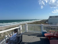 With a quiet beachfront location also in proximity of a lively beach, this Topsail Beach paradise boasts 2 beachfront decks totaling 1,000 square feet, gas and charcoal grills, stunning water views, and a private boardwalk directly to the beach. Enjoy the modern comforts inside this 5-bed, 4.5-bath vacation rental, mixed with proximity to deep sea excursions, golf, aquatic sports, and oceanfront restaurants. Book now for sunrise strolls on the shore and afternoon barbecues with your loved ones!