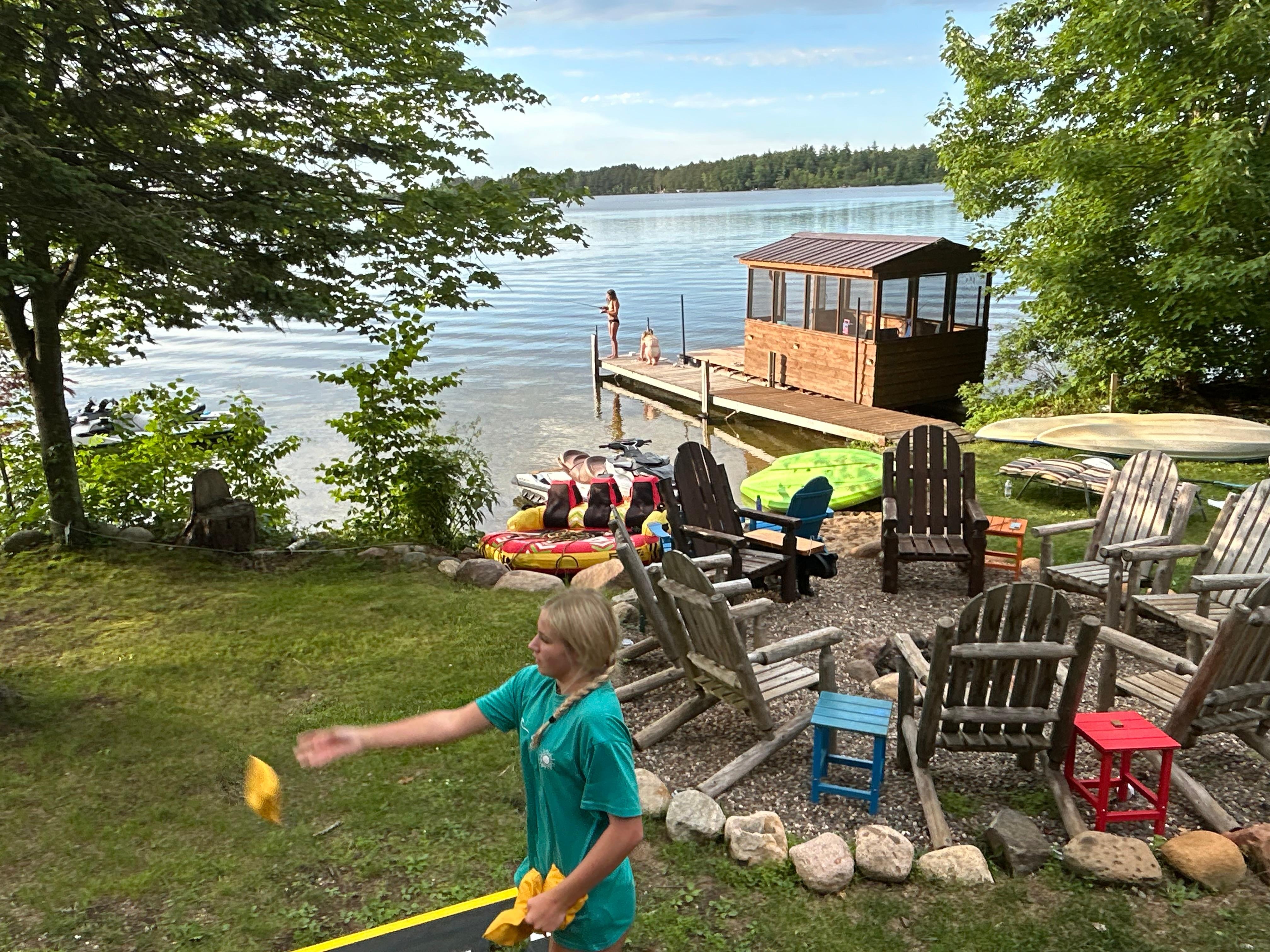 OUTDOOR LIVING: Screened porch, private deck, gas grill, fire pit, dock, shallow swimming beach