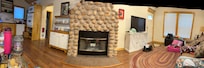 INDOOR DETAILS: 2 cable TVs, dining table, decorative fireplace (not for guest use), board games, ceiling fans