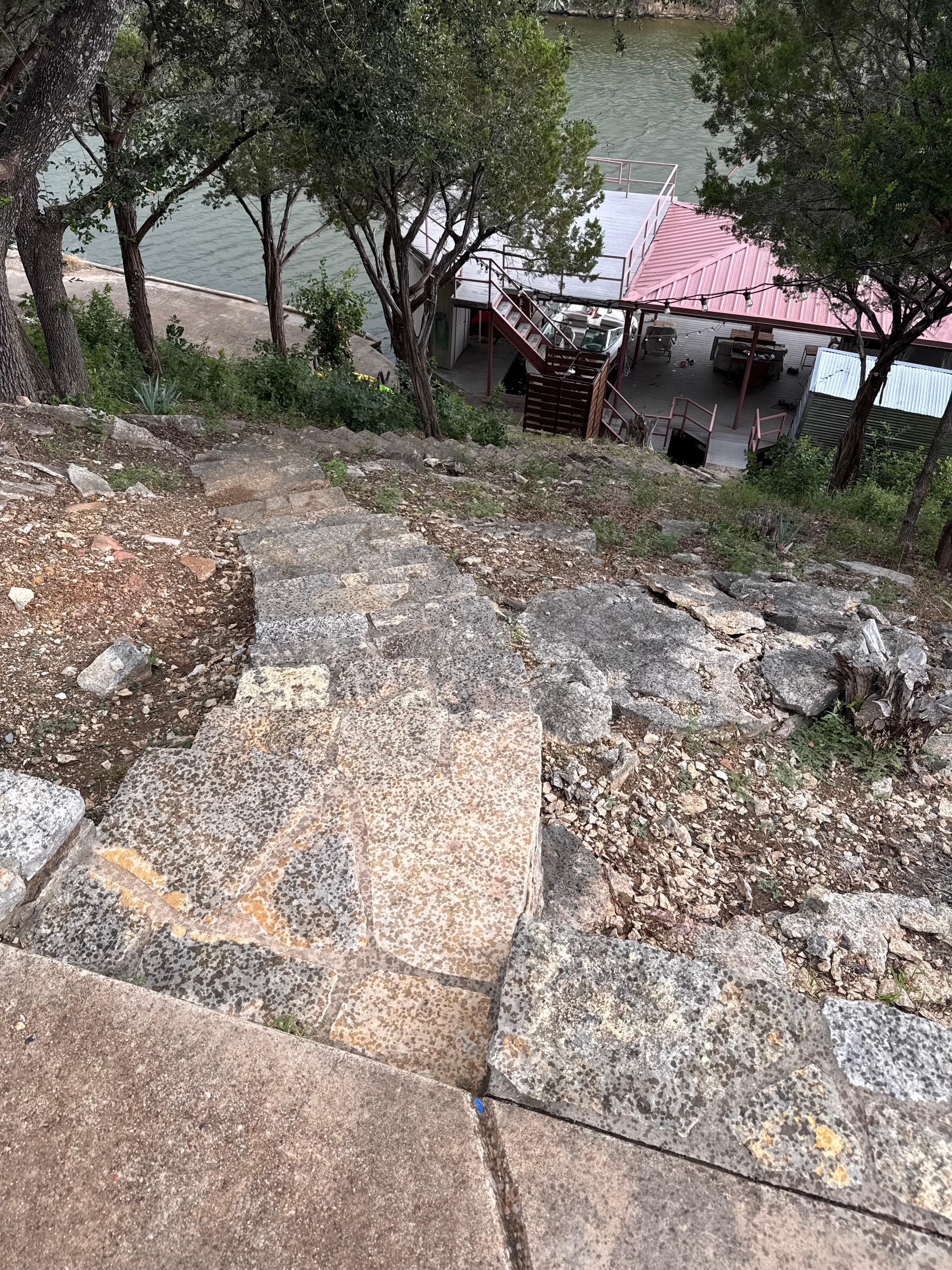 - Steep stairs required to access dock